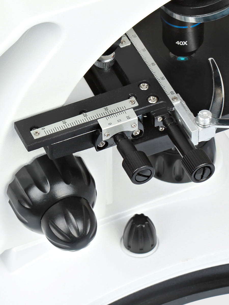Wyróżniający się współosiowymi śrubami mikro i makro, mikroskop ten zapewnia wygodę i precyzję w ustawianiu preparatu.