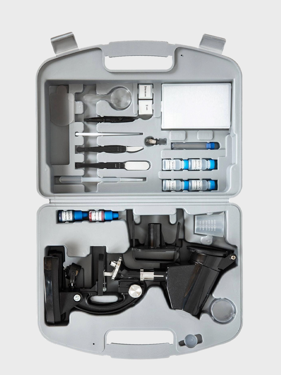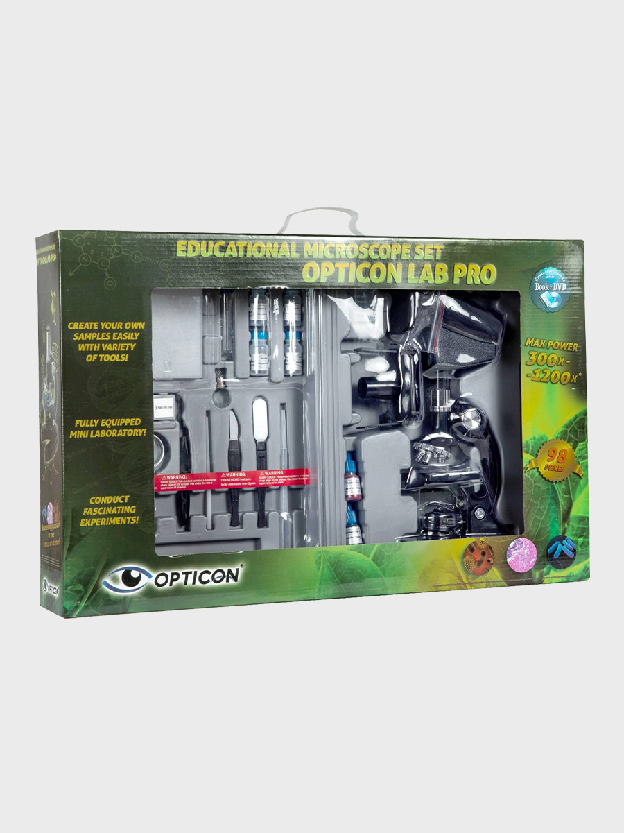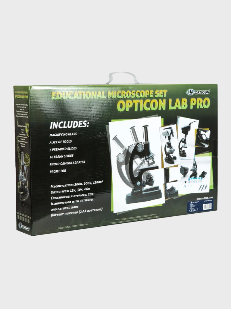 Opticon Lab Pro to rozbudowany zestaw edukacyjny, który pozwala rozpocząć samodzielną pracę z mikroskopem od razu po rozpakowaniu. Umożliwia obserwację tkanek, owadów i mikrostruktur dzięki wysokiej jakości układowi optycznemu. Różnorodne akcesoria i gotowe preparaty zapewniają praktyczne i wygodne użytkowanie. Zestaw umożliwia również fotografowanie oraz prezentację obrazu z mikroskopu. Wszystko zapakowane w poręczną walizkę do łatwego przechowywania.