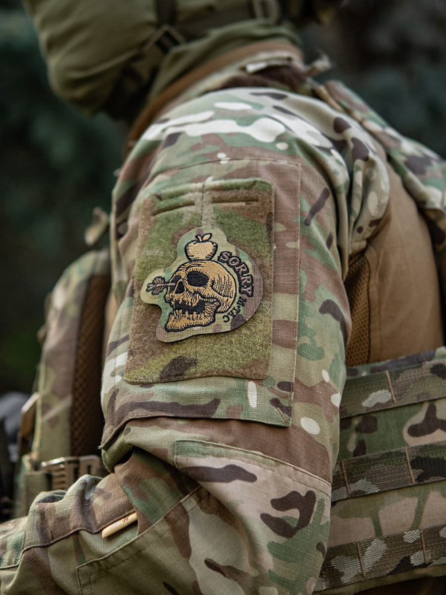 NASZYWKA SORRY CZASZKA Z JABŁKIEM HAFTOWANA MULTICAM-COYOTE
