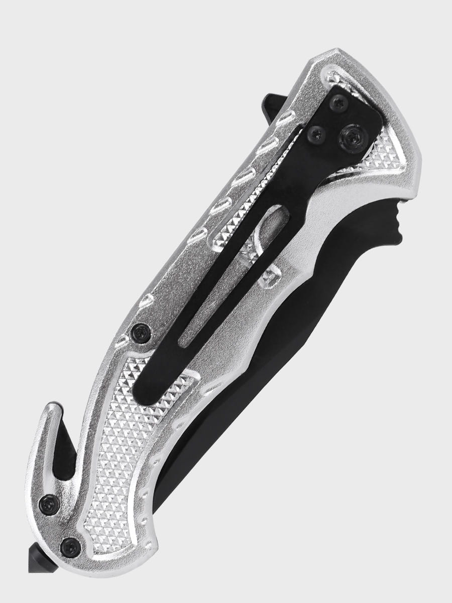 Zakończenie rękojeści posiada zbijak do szyb oraz ostry nożyk do szybkiego cięcia pasów bezpieczeństwa, kabli czy linek. Dzięki swoim kompaktowym wymiarom i lekkiej wadze idealnie nada się jako niezbędne wyposażenie dla ratownika.