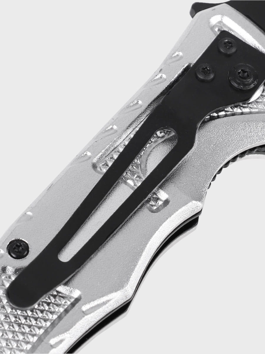 Na jednej stronie znajduje się symbol medycyny i farmacji, po drugiej praktyczny klips, dzięki któremu nóż można zaczepić na ubraniu, aby zawsze był pod ręką.