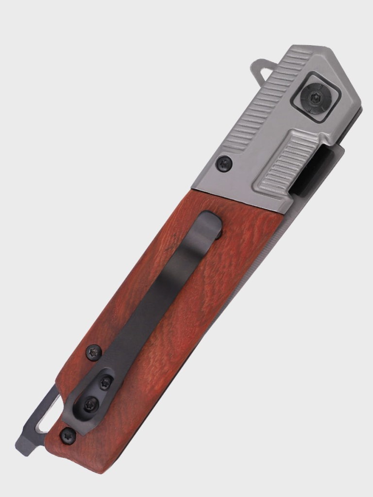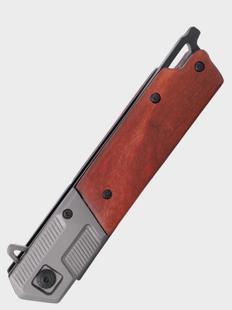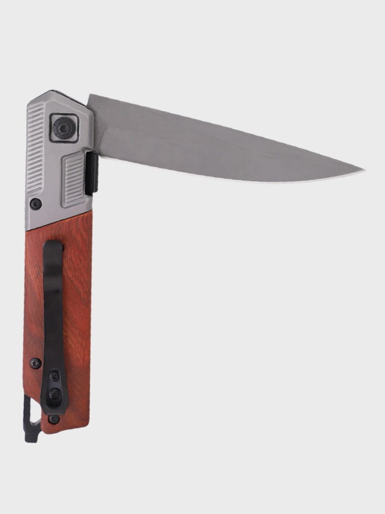 Nóż swoją stylistyką przypomina klasyczne, składane noże. Posiada wysokiej jakości ostrze wykonane ze stali nierdzewnej 3CR13 powlekanej warstwą TYTANU, które idealnie współgra z drewnianą okładziną rękojeści.