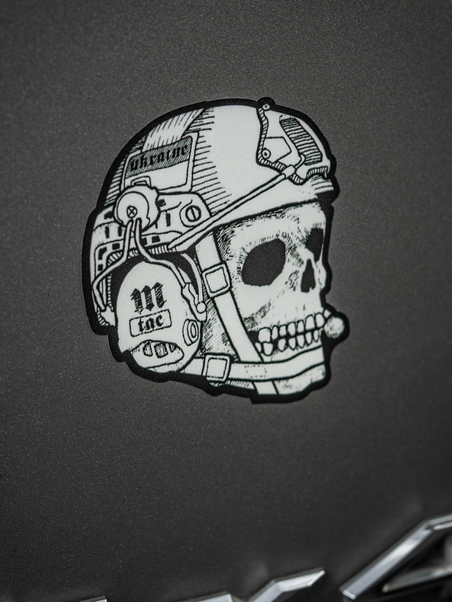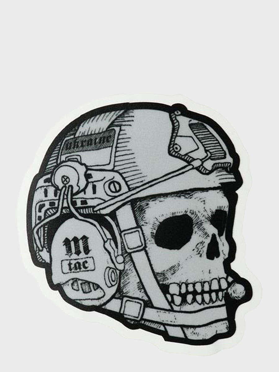 Wizerunek czaszki ma korzenie historyczne - spotykamy go w wielu kulturach i w elementach zdobienia mundurów oraz broni rożnych armii na całym świecie. Wśród wojska czaszka jest zarówno symbolem śmierci, jak i oznaką nieustraszoności przed jej przerażającym obliczem. Naklejka prezentuje wizerunek czaszki w hełmie Fast i aktywnych słuchawkach, co jest nowoczesną interpretacją znanego na całym świecie motywu.
