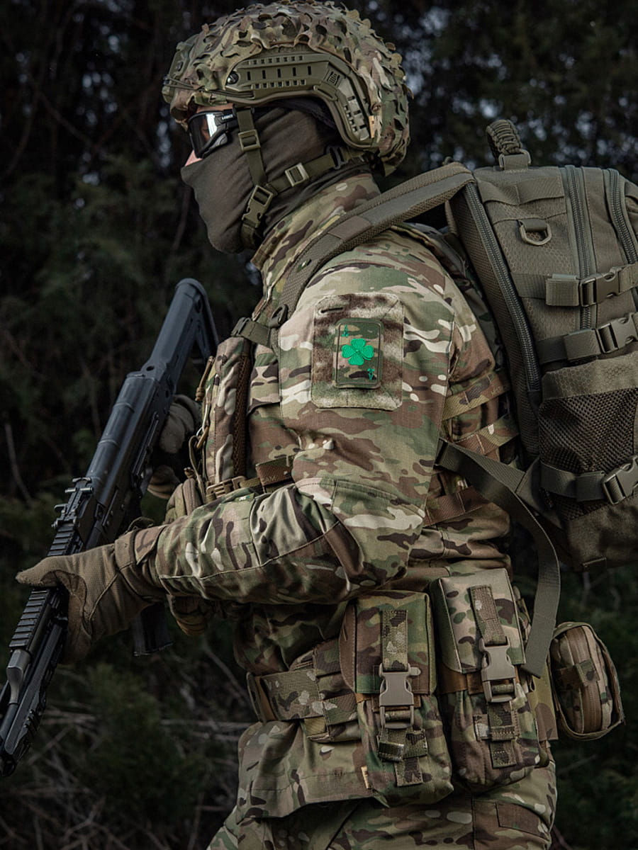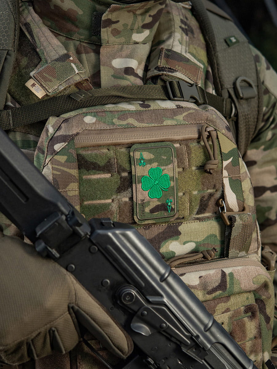 Stylowa naszywka z wyhaftowanym wizerunkiem liścia koniczyny wykonana jest z wysokiej jakości materiału Cordura 500D z wykorzystaniem technologii Laser Cut, wytrzymałego materiału, który jest odporny na ścieranie i duże naprężenia. Mocuje się ją do ubrania lub oporządzenia za pomocą rzepów.