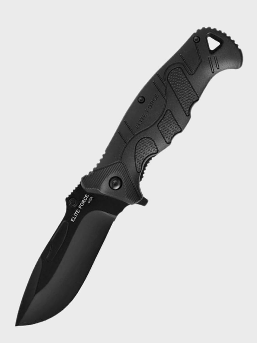 Elite Force EF141 to nóż składany w taktycznej stylistyce, z głownią ze stali nierdzewnej 440A oraz profilowanych okładzinach.