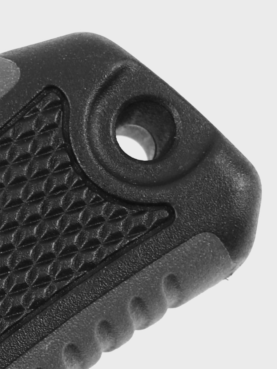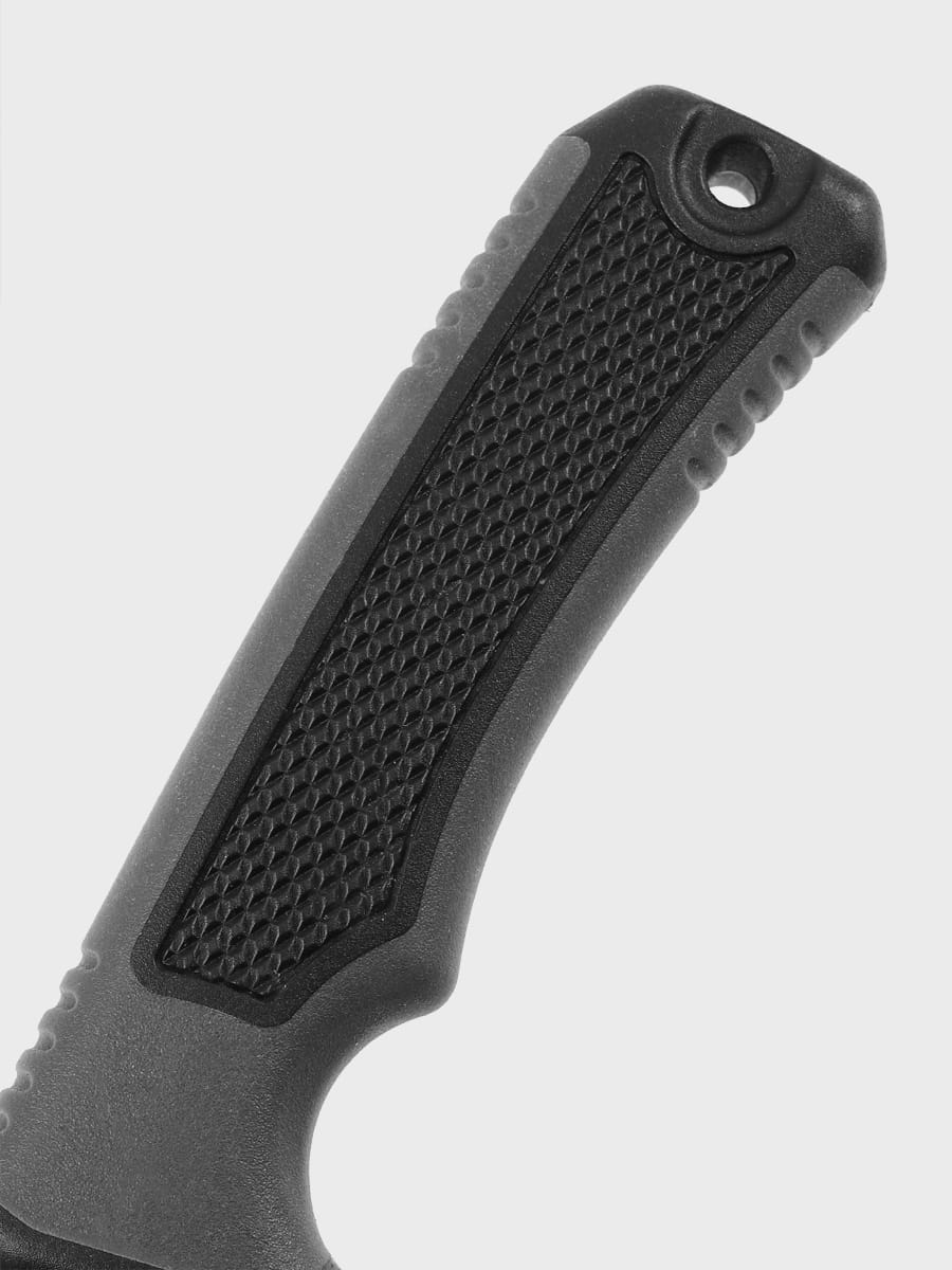 Ergonomiczna rękojeść wykonana z wytrzymałego kompozytu o chropowatej, antypoślizgowej fakturze zapewnia pewny chwyt – nawet w rękawiczkach, mokrych czy zmarzniętych dłoniach. Dodatkowy otwór w rękojeści pozwala na przewleczenie linki lub troka.