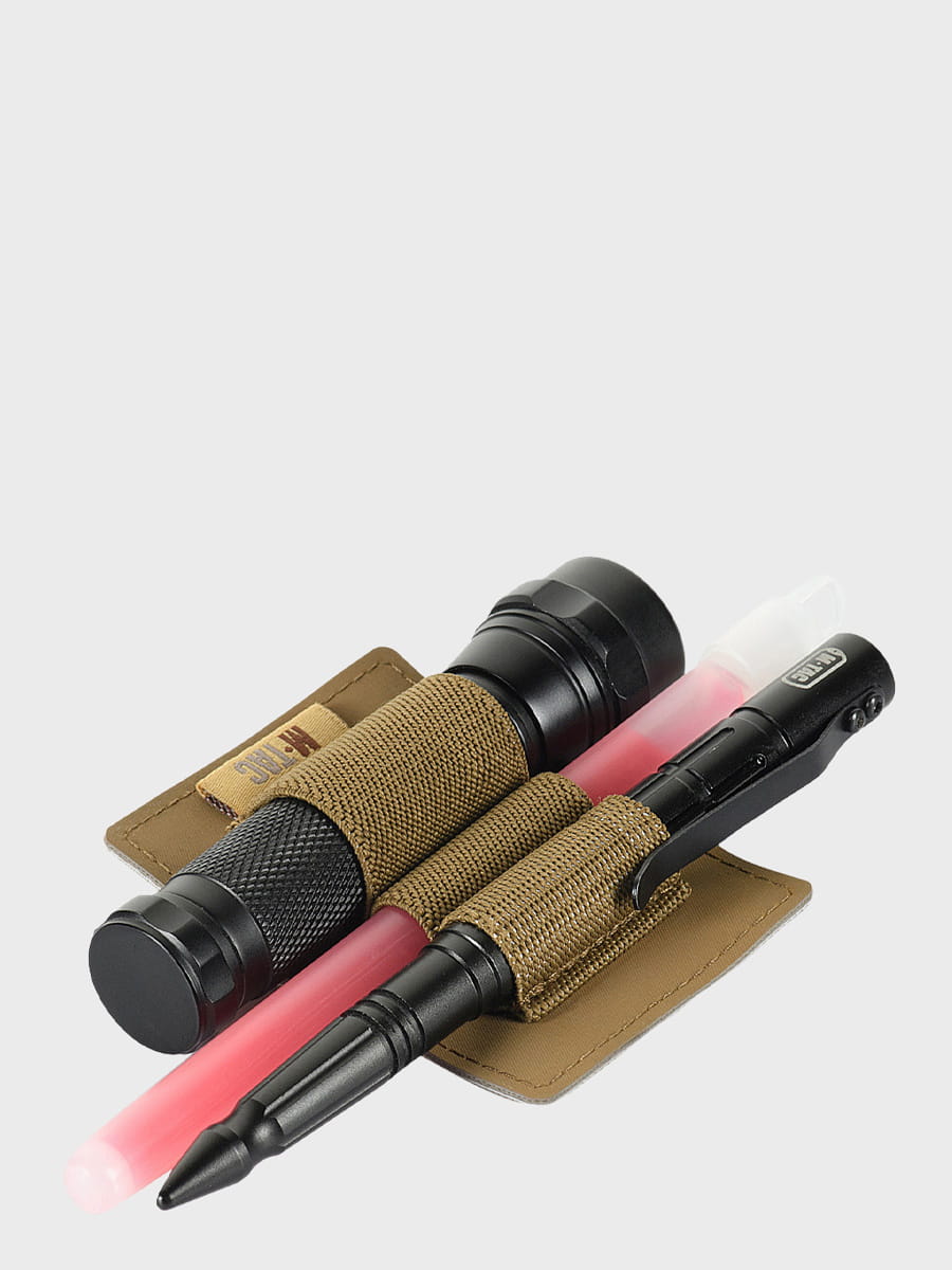Elastyczne opaski przeznaczone są do mocowania latarki, multitoola, noża, gazu pieprzowego i innych przydatnych rzeczy.