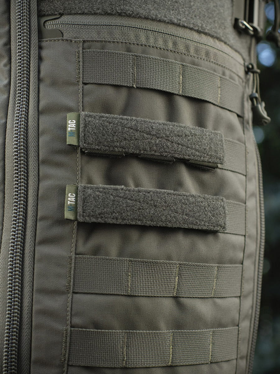 UWAGA! Przedmiotem oferty jest M-Tac Panel na naszywki na MOLLE 120x26 w kolorze Ranger Green. Pozostałe elementy służą przedstawieniu funkcjonalności.