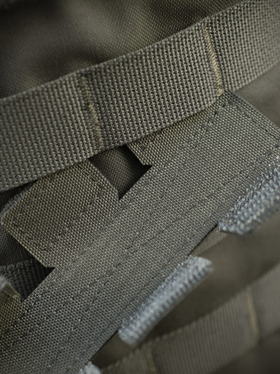 Mocuje się do interfejsu Molle za pomocą trzech pasków na rzepy.