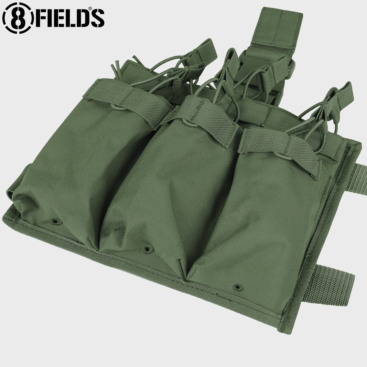 Otwarta konstrukcja zapewnia szybkie wyciąganie magazynków z ładownicy, a gumowa linka z wygodnym uchwytem bezpieczne ich przenoszenie.