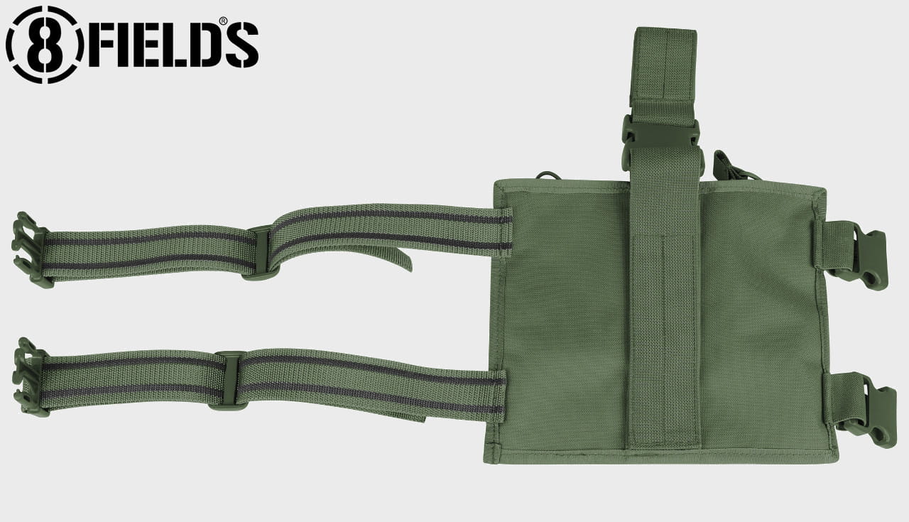 Panel wyposażony jest w trzy pasy mocujące. Montuje się go na pas biodrowy oraz dwoma regulowanymi pasami na udo. Paski na nogi od wewnętrznej strony podszyty zostały gumowymi wstawkami które redukują przesuwanie się kabury. Taśmy mocujące wyposażono w solidne klamry, umożliwiające szybkie odpięcie.