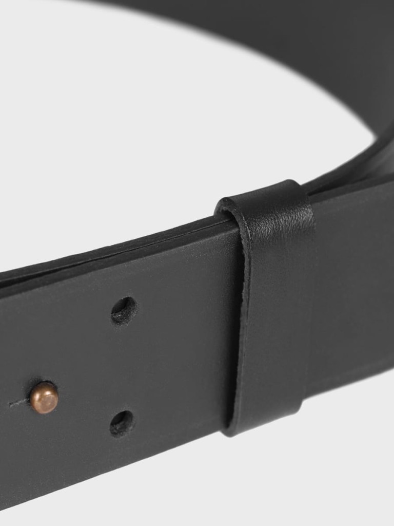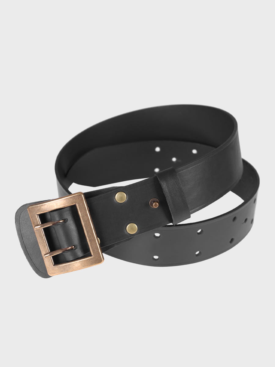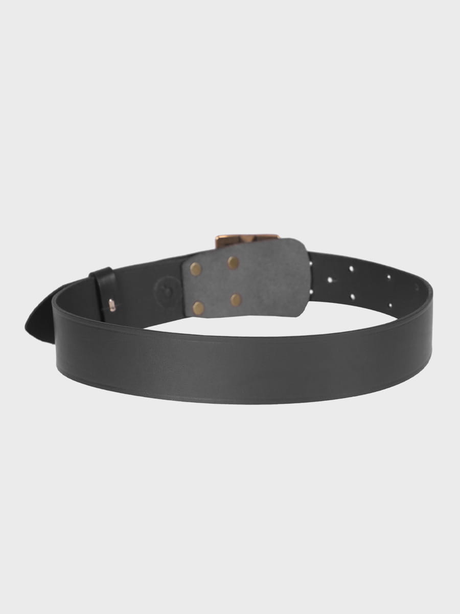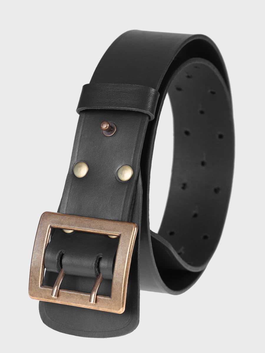 Pas z mosiężną klamrą polskiej marki HADA to klasyczny element inspirowany wyposażeniem służb mundurowych. Wykonany z naturalnej, licowanej skóry o grubości 3,5 mm, zapewnia niezawodność oraz estetyczny wygląd. Charakteryzuje się wysokiej jakości, metalową klamrą z podwójnym oczkiem i knopikiem, zamocowaną przy pomocy wytrzymałych nitów. Pod klamrą znajduje się szeroka osłona, która chroni materiał ubrania przed przetarciem.