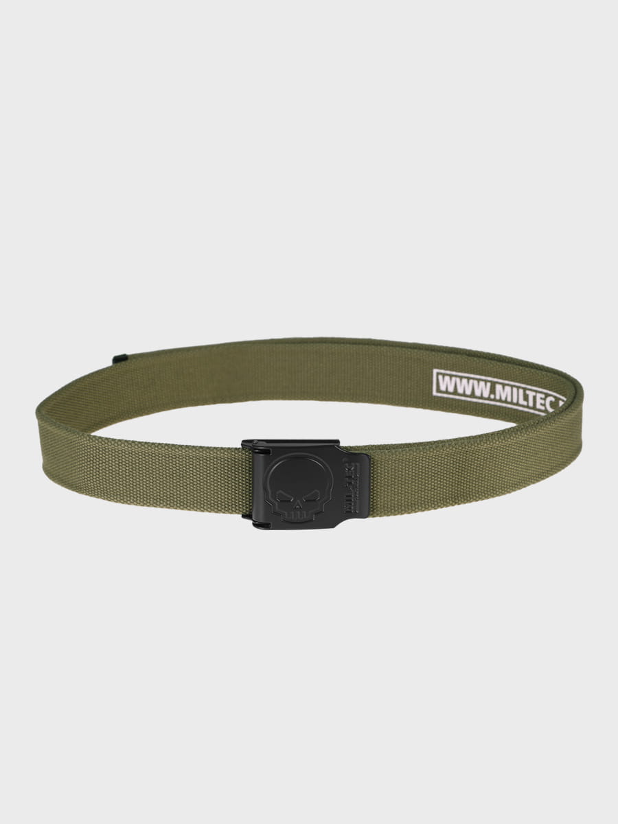 Stylowy pasek do spodni marki Mil-Tec, wykonany z wytrzymałego poliestru i wyposażony w masywną klamrę ze stopu cynku z wytłoczoną czaszką. Pasek oferuje bezstopniową regulację, co pozwala na idealne dopasowanie do sylwetki. To funkcjonalny dodatek do ubioru codziennego, outdoorowego lub taktycznego.