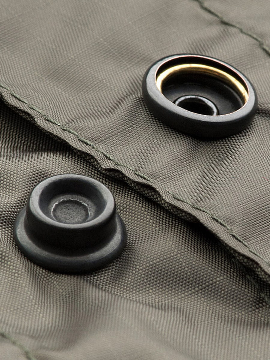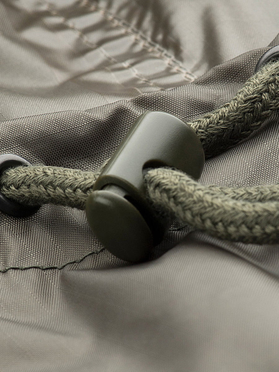 Wykonane w 100% z poliamidu w splocie Rip-Stop (włókno syntetyczne o właściwościach użytkowych. Jest to lekka „oddychająca” szybkoschnąca i odporna na ścieranie tkanina, która doskonale zachowuje swój kształt i nie wymaga specjalnej pielęgnacji).