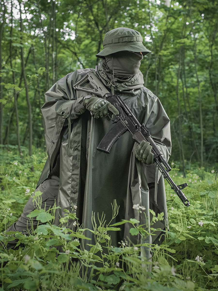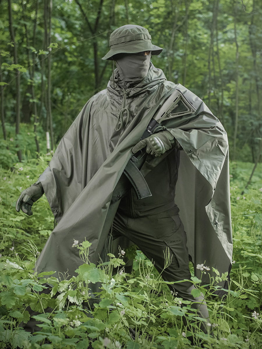 Peleryna świetnie sprawdzi się w warunkach polowych, jak również na co dzień w deszczową pogodę. Dzięki materiałowi z jakiego jest wykonana można ją z łatwością złożyć tak, aby nie zajmowała dużo miejsca. W zestawie znajduje się pokrowiec.