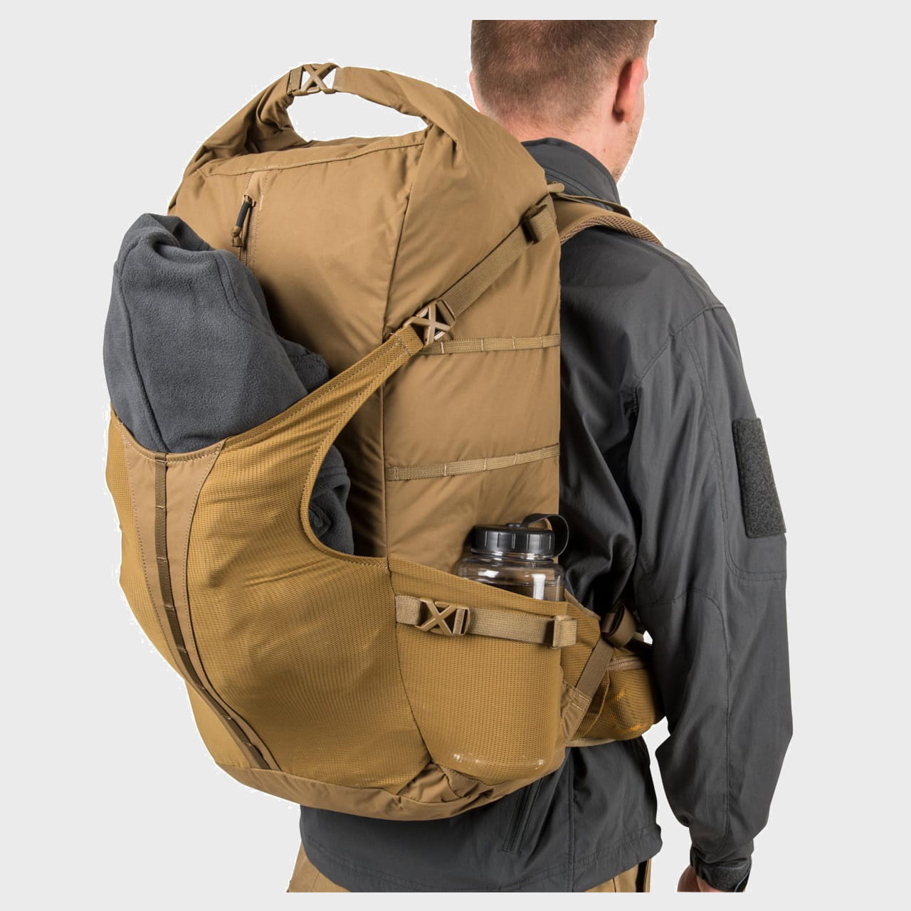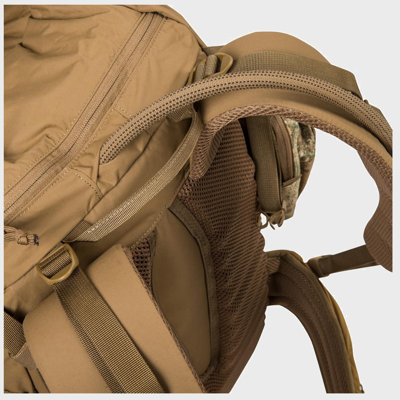 Boczne obszycia taśmami MOLLE Lite szerokości 10mm, pozwalają przytroczyć dodatkowe kieszenie i zasobniki w standardzie MOLLE/PALS.