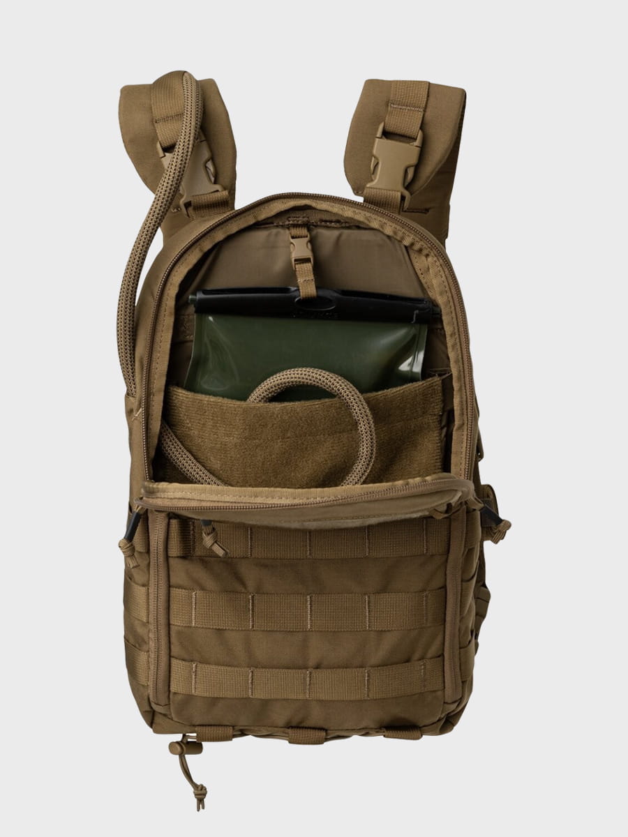 Wnętrze wyściełano miękkim rzepem, dzięki czemu można dopinać dodatkowe akcesoria. Komora główna jest na tyle pojemna, że pomieści nie tylko worek na wodę lub przedmioty podobnej wielkości, lecz także zapasową kurtkę czy poncho.