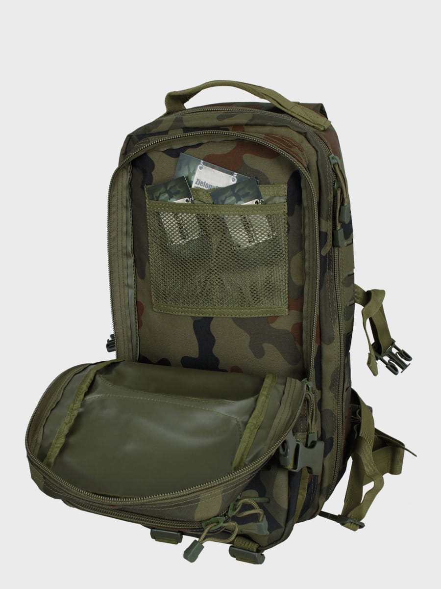 Funkcjonalny i niezawodny, zaopatrzony w przegrody i kieszenie, zamykany na zamki błyskawiczne, idealny plecak o uniwersalnym zastosowaniu: miasto, survival, militaria oraz turystyka.