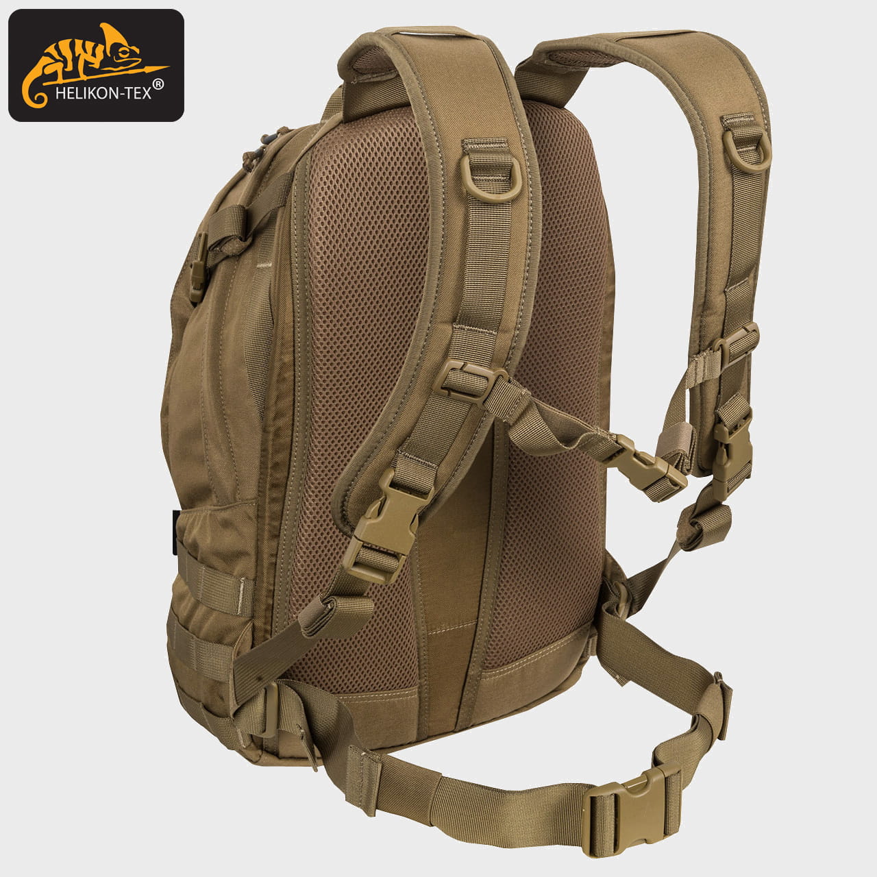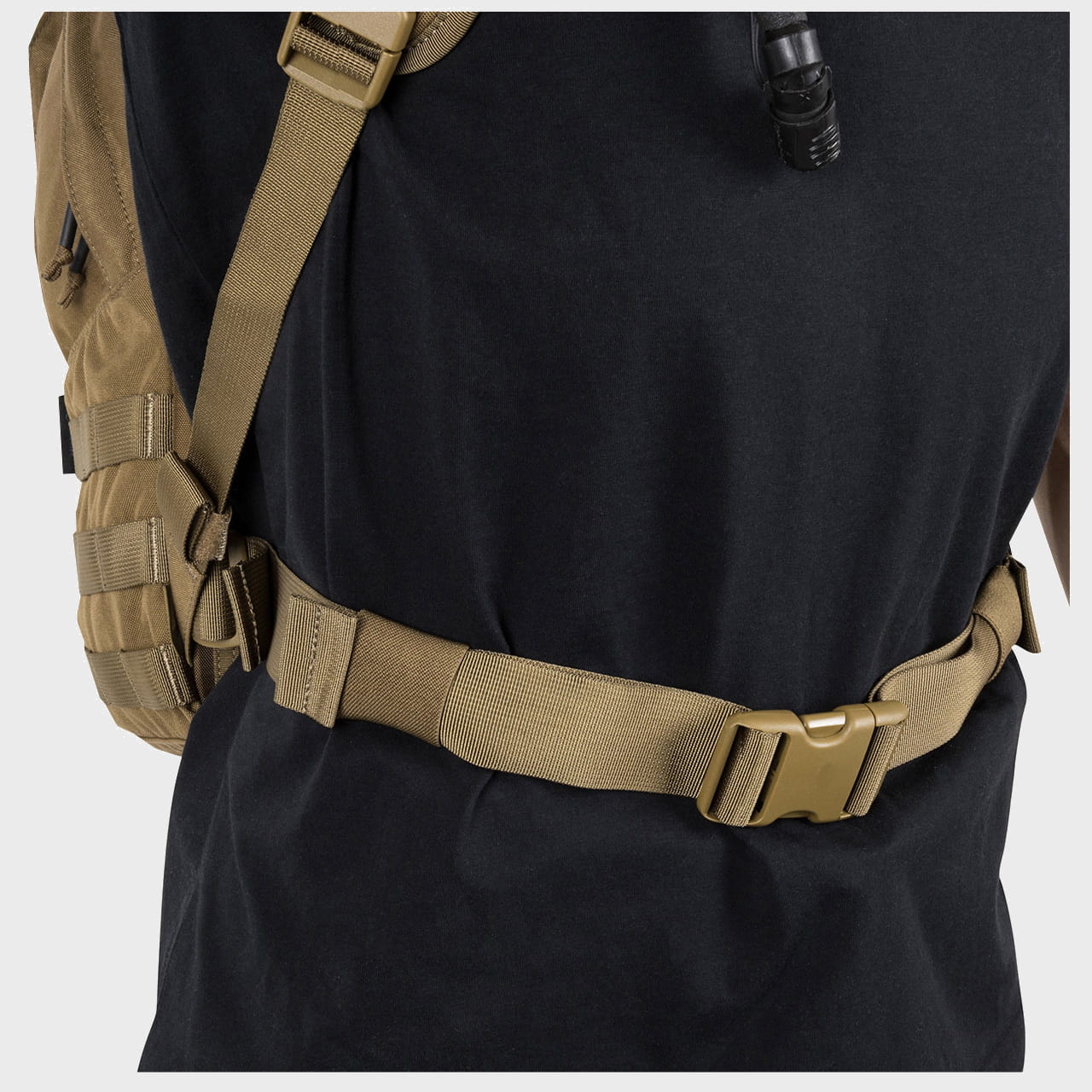Z przodu jak i po bokach plecaka znajdują się obszycia taśmami w systemie MOLLE/PALS, dzięki którym z łatwością można troczyć dodatkowe kieszenie i zasobniki.