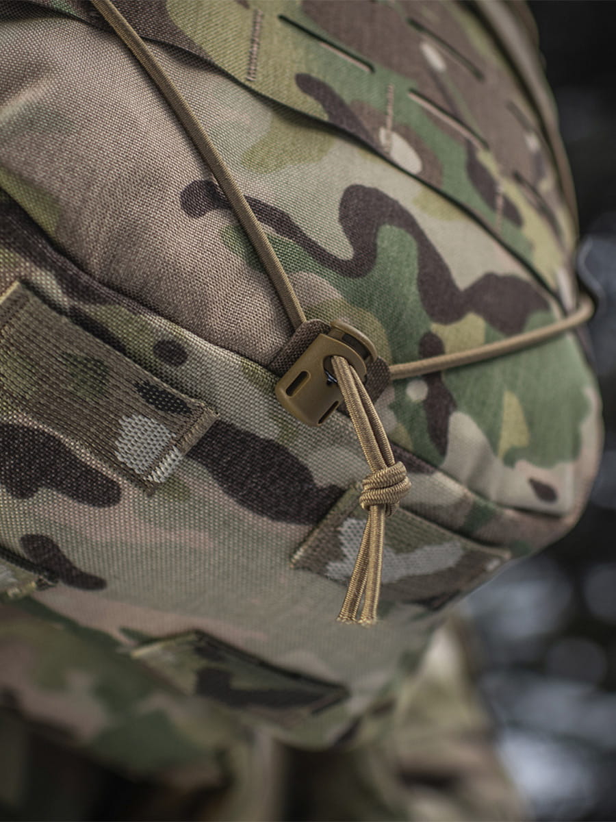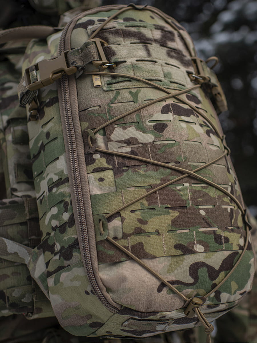 Przód i boki plecaka zostały wyposażone w system MOLLE LASER CUT, który w razie potrzeby pozwoli Ci zwiększyć objętość o dodatkowe sakiewki.
