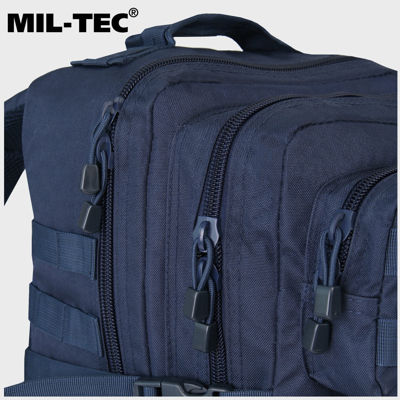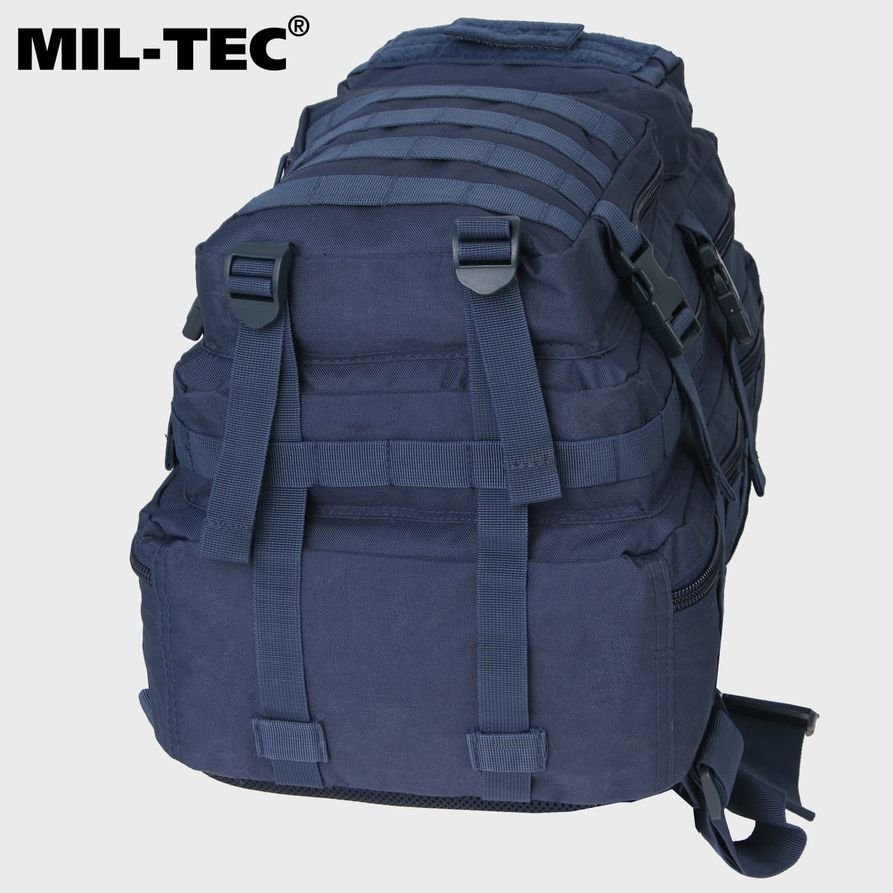 Plecak posiada system zewnętrznych pasów parcianych o szerokości 2,5 cm, umożliwiających podczepienie ładownic w systemie modułowym Molle.