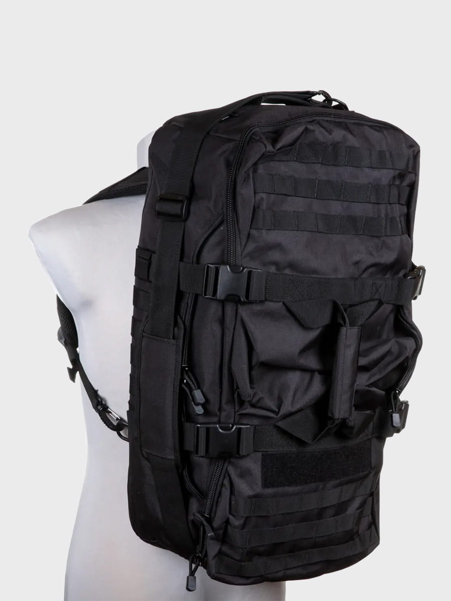 Plecak-torba polskiej marki GFC Tactical, to obszerny plecak wykonany z wytrzymałego Nylonu 500D. Model cechuje wysoka funkcjonalność dzięki wielu kieszeniom wewnętrznym oraz zewnętrznym i możliwości przekształcenia plecaka w torbę podręczną lub torbę na ramię.