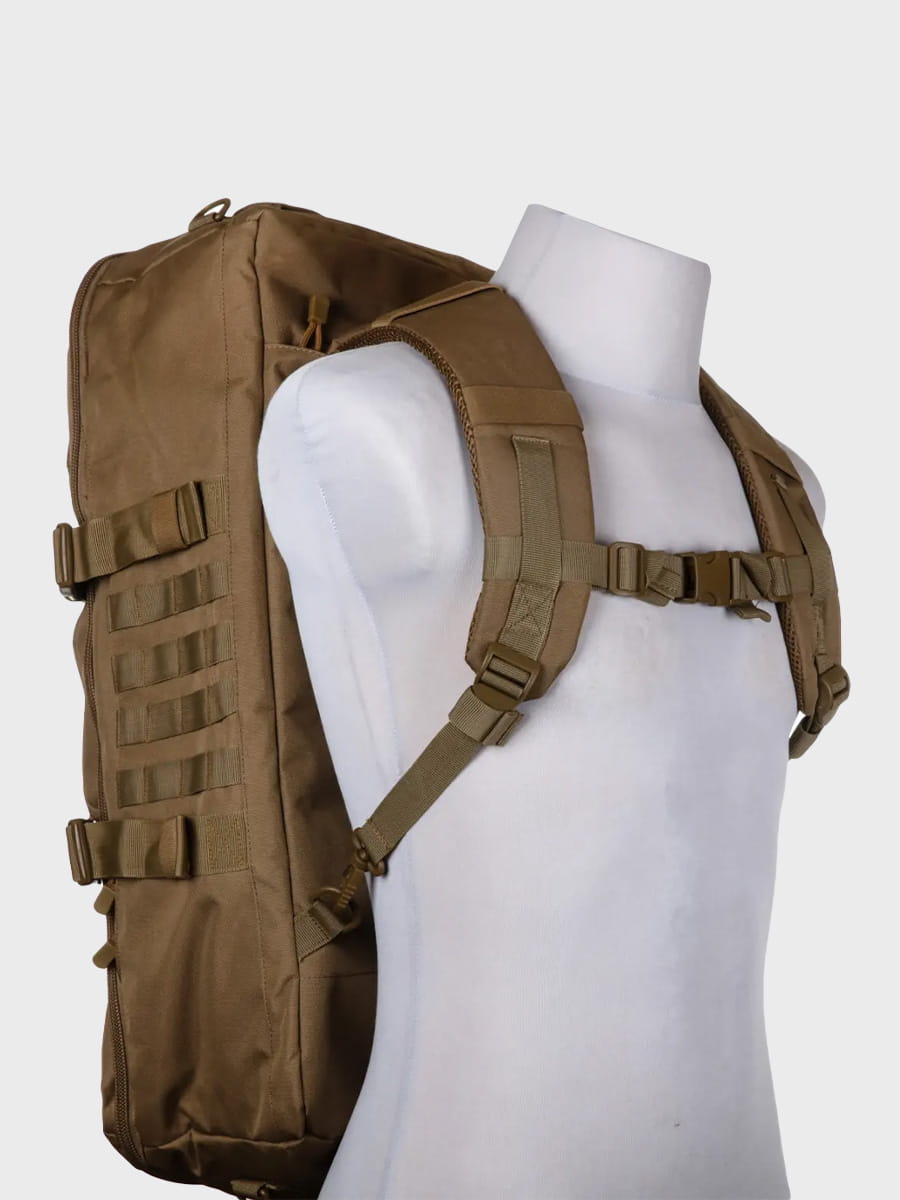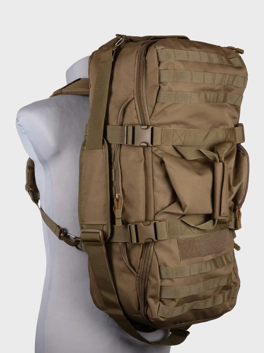 Plecak-torba polskiej marki GFC Tactical, to obszerny plecak wykonany z wytrzymałego Nylonu 500D. Model cechuje wysoka funkcjonalność dzięki wielu kieszeniom wewnętrznym oraz zewnętrznym i możliwości przekształcenia plecaka w torbę podręczną lub torbę na ramię.