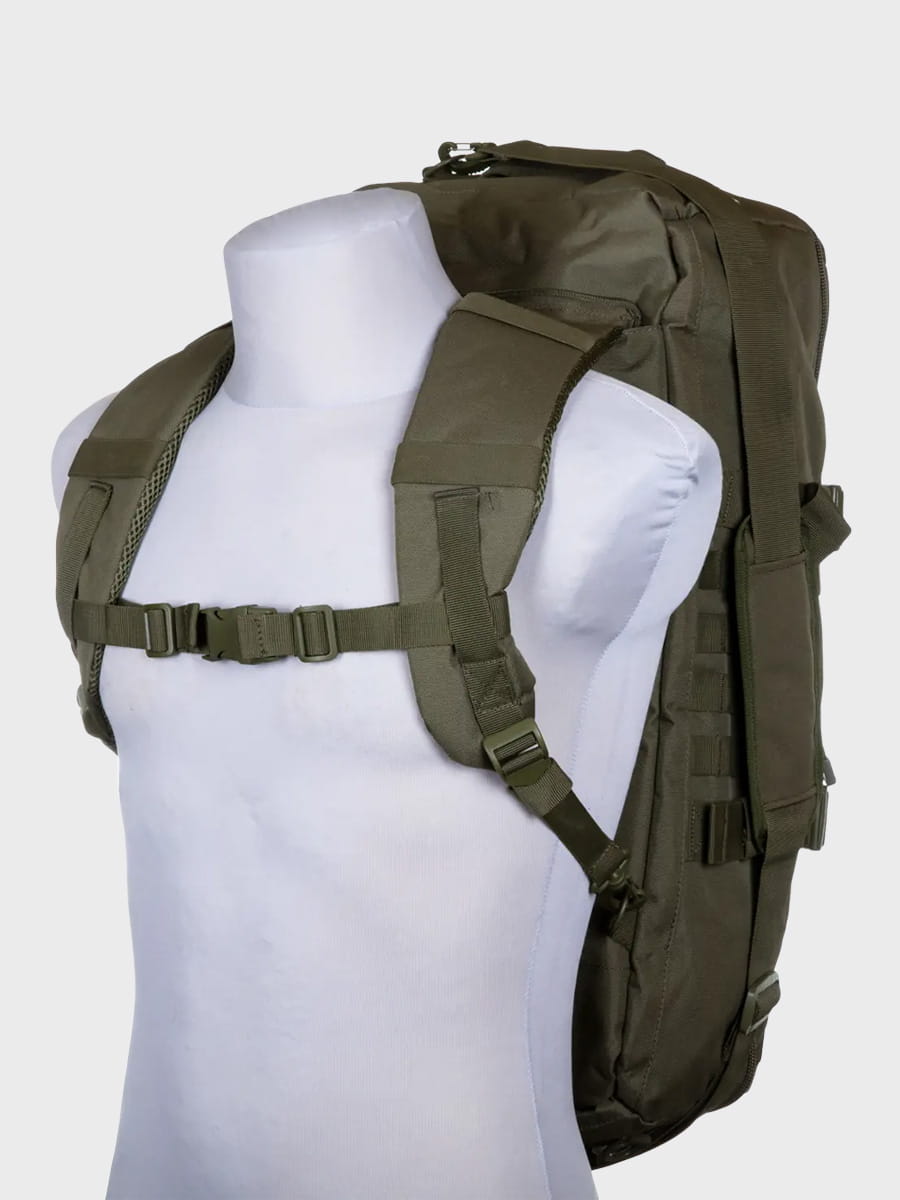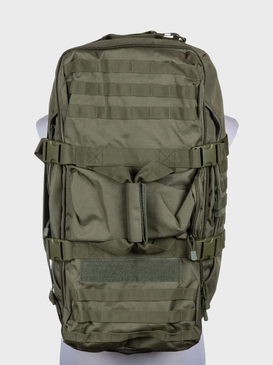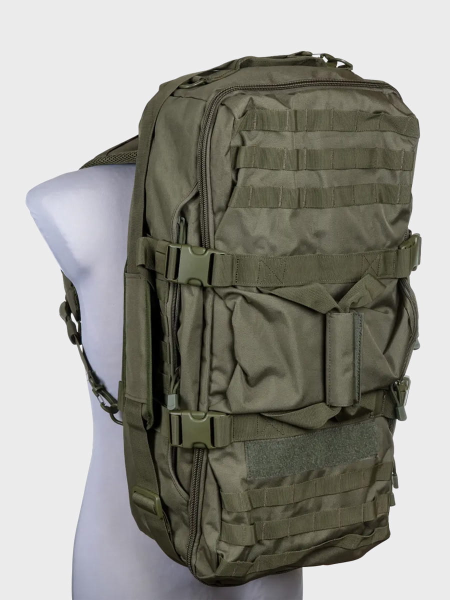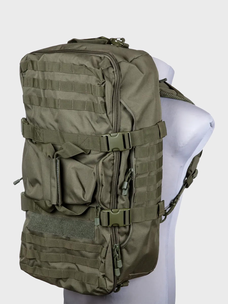 Plecak-torba polskiej marki GFC Tactical, to obszerny plecak wykonany z wytrzymałego Nylonu 500D. Model cechuje wysoka funkcjonalność dzięki wielu kieszeniom wewnętrznym oraz zewnętrznym i możliwości przekształcenia plecaka w torbę podręczną lub torbę na ramię.