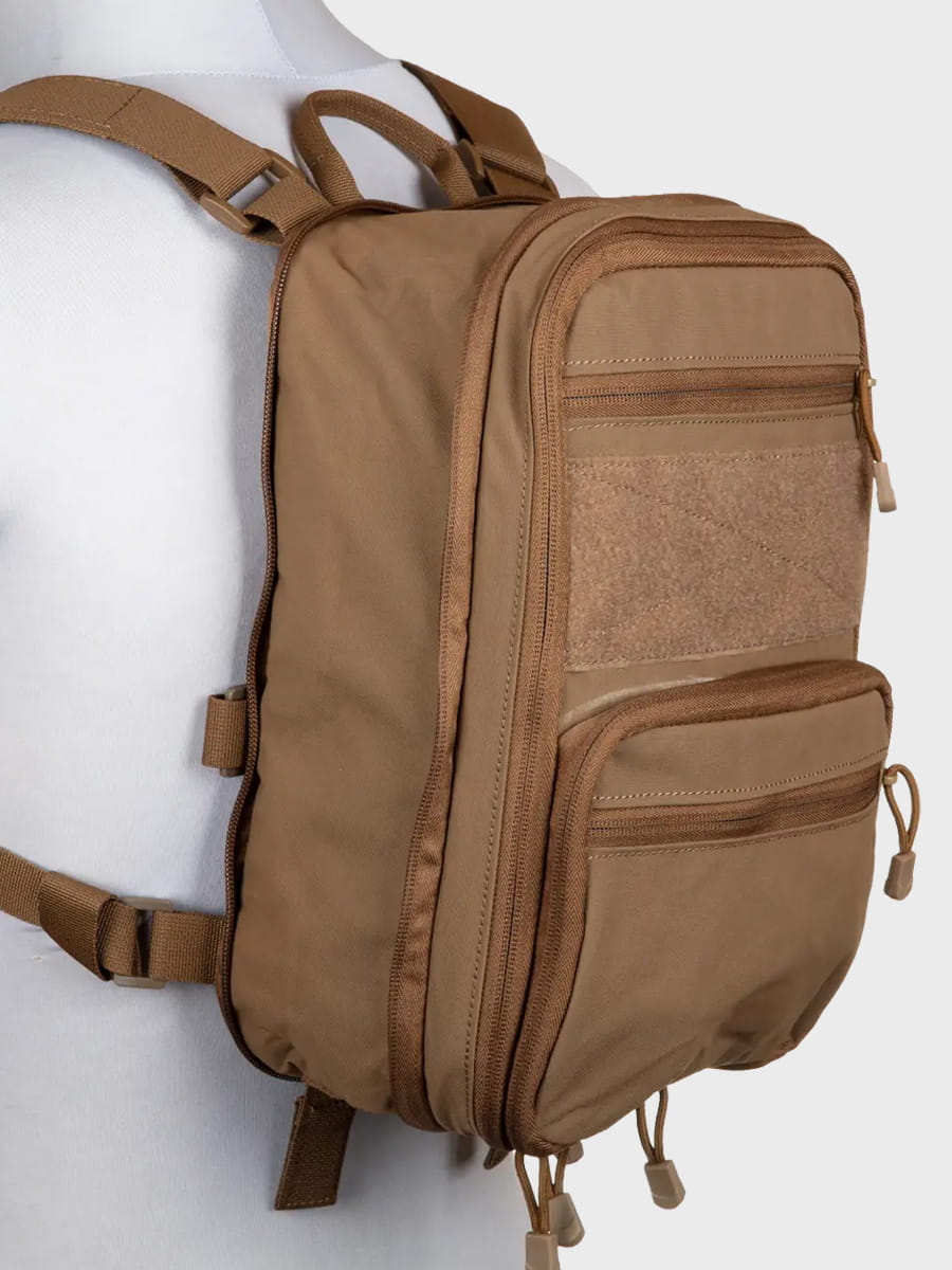 Plecak posiada kilka funkcjonalnych kieszeni. Pierwsza z nich to główna, zamykana kieszeń na wkład hydracyjny z wyprowadzeniem węża w górnej części plecaka. Na przodzie plecaka umieszczono dwie mniejsze kiszenie, także zamykane na zamek błyskawiczny. Na przodzie jednej z ładownic umieszczono panel rzepowy np. na naszywki identyfikacyjne.