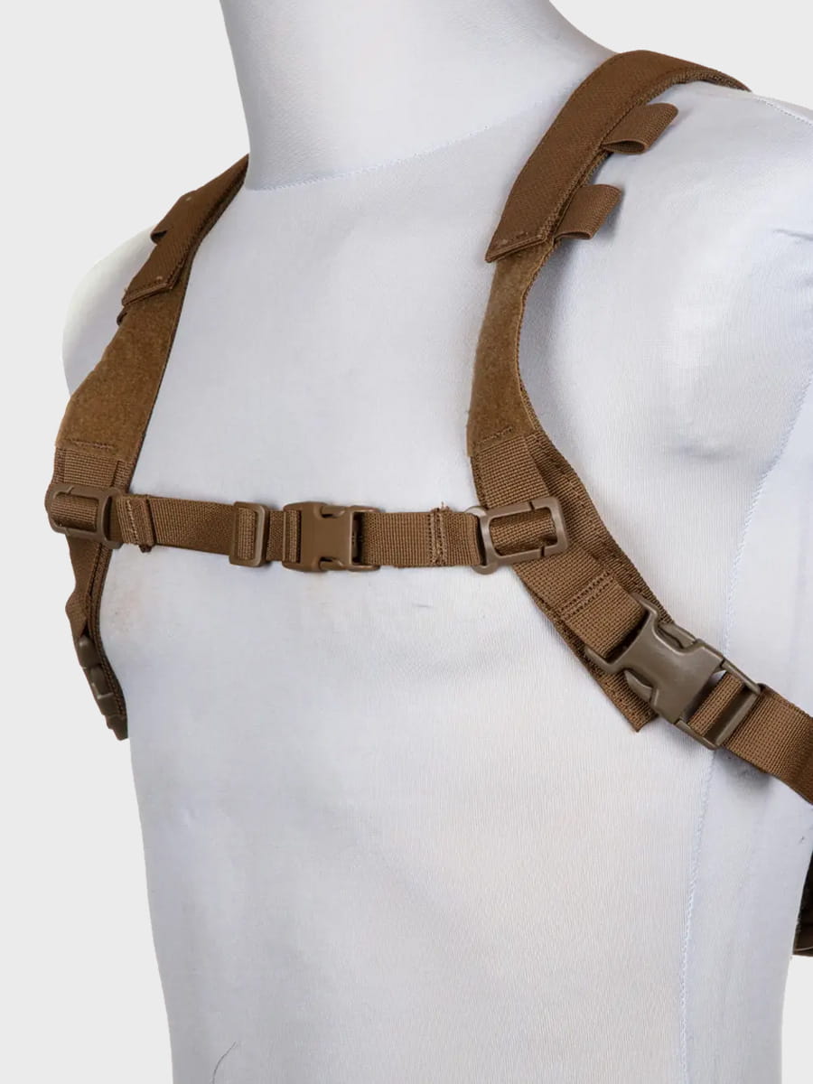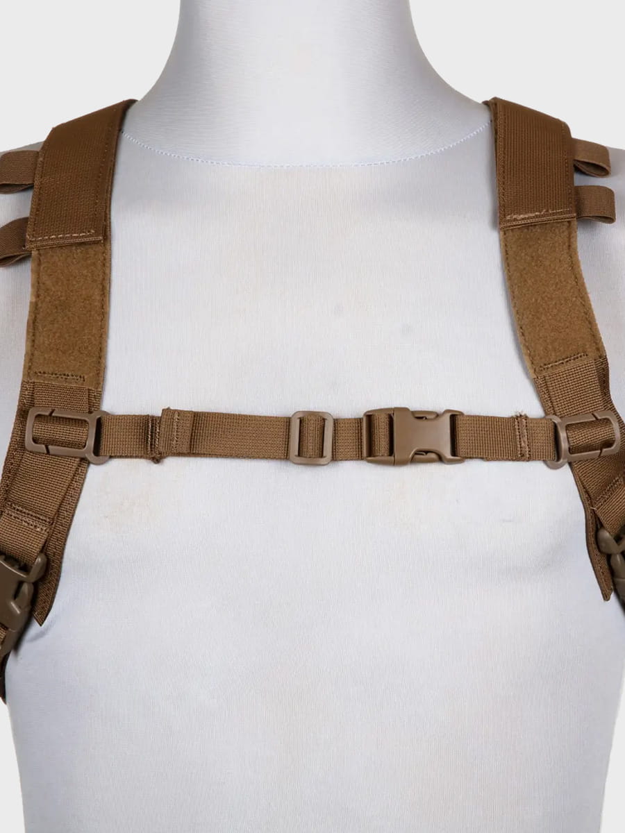 Szelki plecaka można całkowicie odczepić co pozwoli na przymocowanie plecaka do kamizelki taktycznej typu Plate Carrier wyposażonej w system montażowy MOLLE.