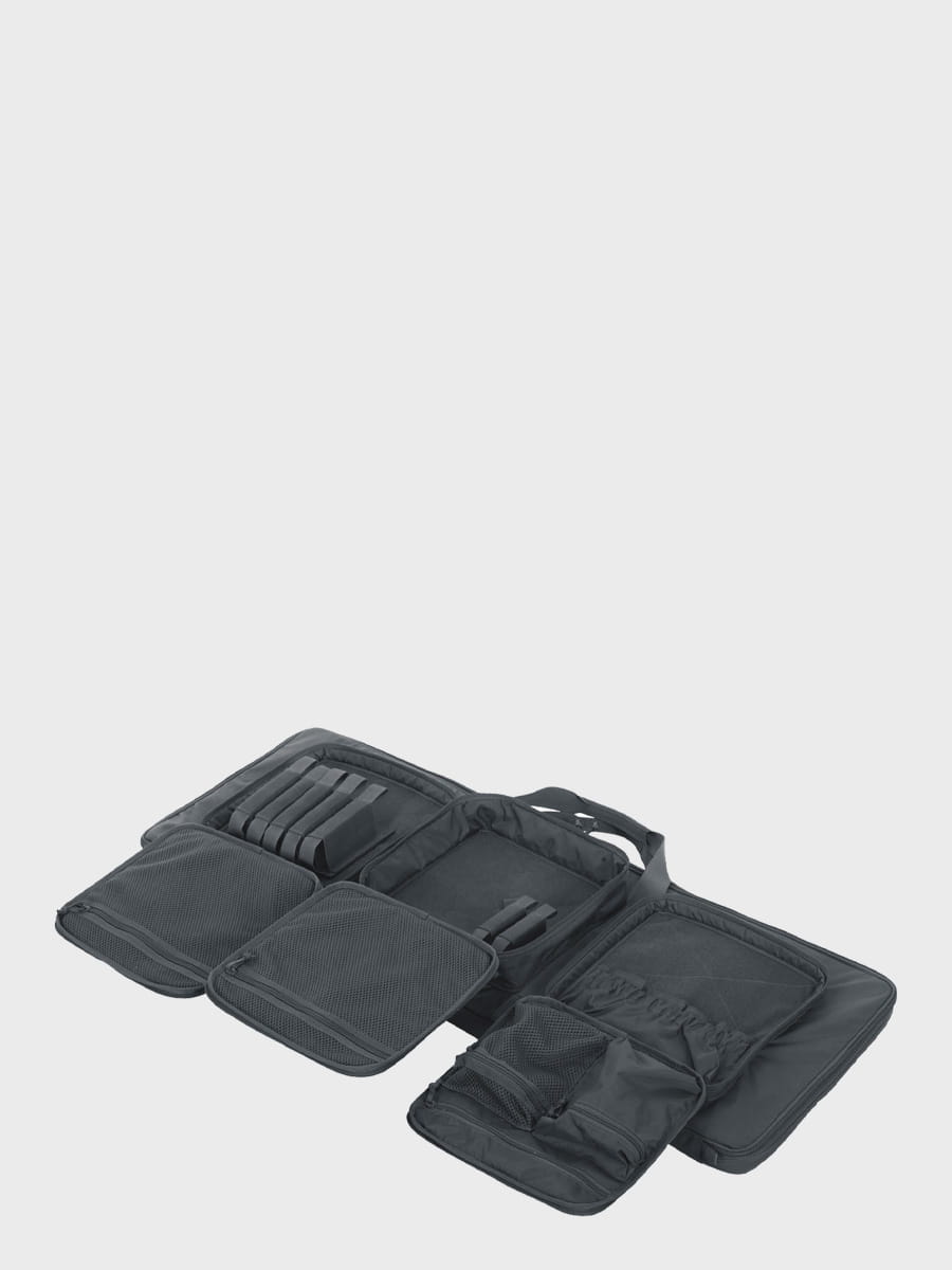 Kieszenie pokrowca zostały obszyte od wewnątrz miękkim rzepem, który umożliwia dopięcie dodatkowych elementów kompatybilnych z Versatile Insert System. Kieszenie posiadają także siatkowe przegrody z suwakami oraz organizery. Wraz z torbą w zestawie otrzymujemy dwa uniwersalne uchwyty na magazynki pistoletowe oraz uchwyty na pięć magazynków karabinowych.