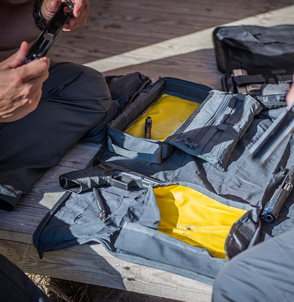 W zestawie znajduje się dodatkowo mata i kuweta do czyszczenia broni krótkiej i karabinków, przenoszona pod pokrowcem, w uchwycie z elastycznego sznurka.