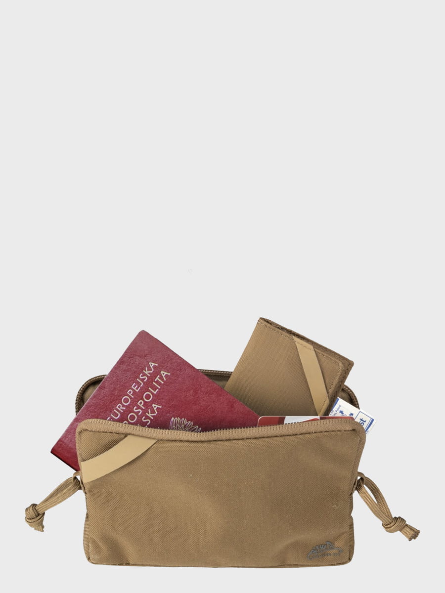 Pomieści wszystkie niewielkie przedmioty. Sprawdzi się jako podróżny portfel na dokumenty lub zapasową gotówkę.