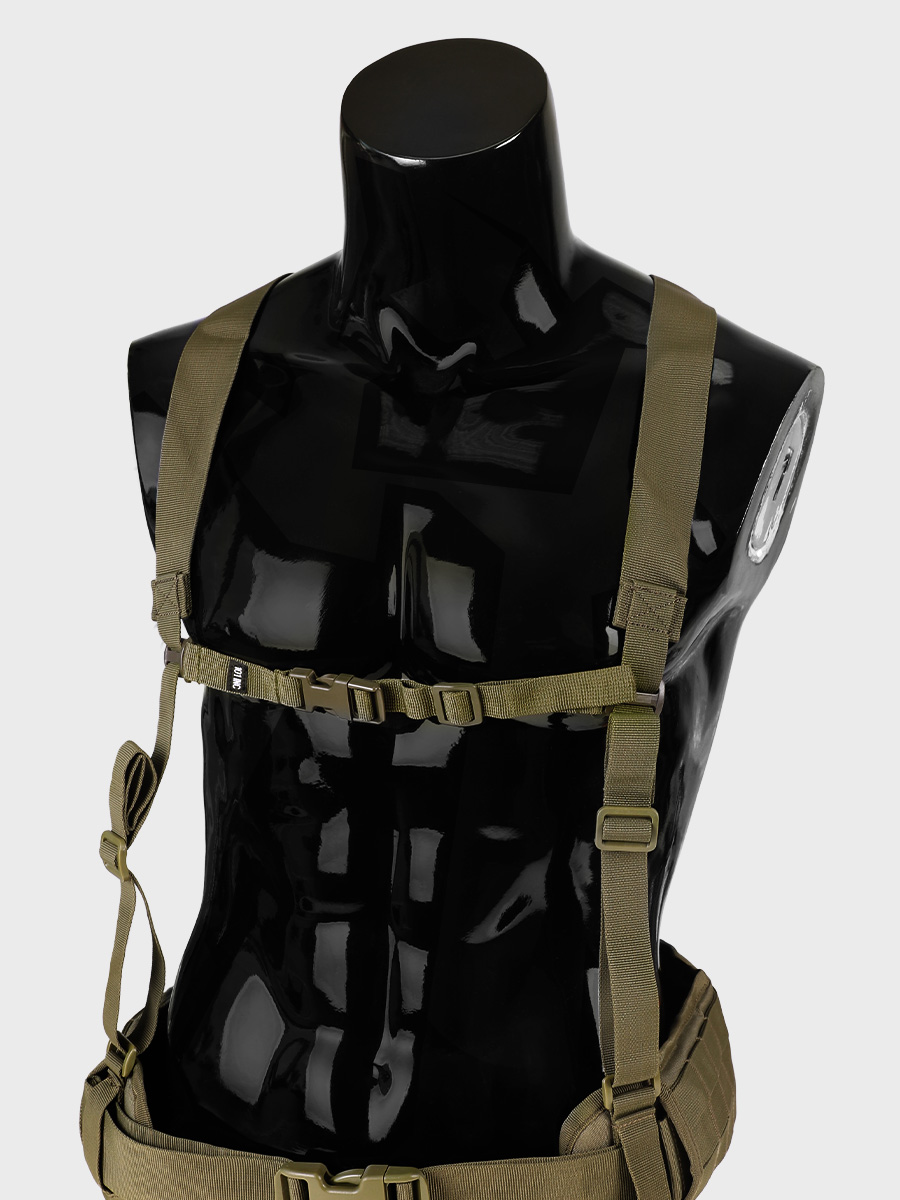 UWAGA! Przedmiotem oferty jest uniwersalny pas piersiowy w kolorze Olive. Pozostałe elementy służą wizualizacji funkcjonalności.