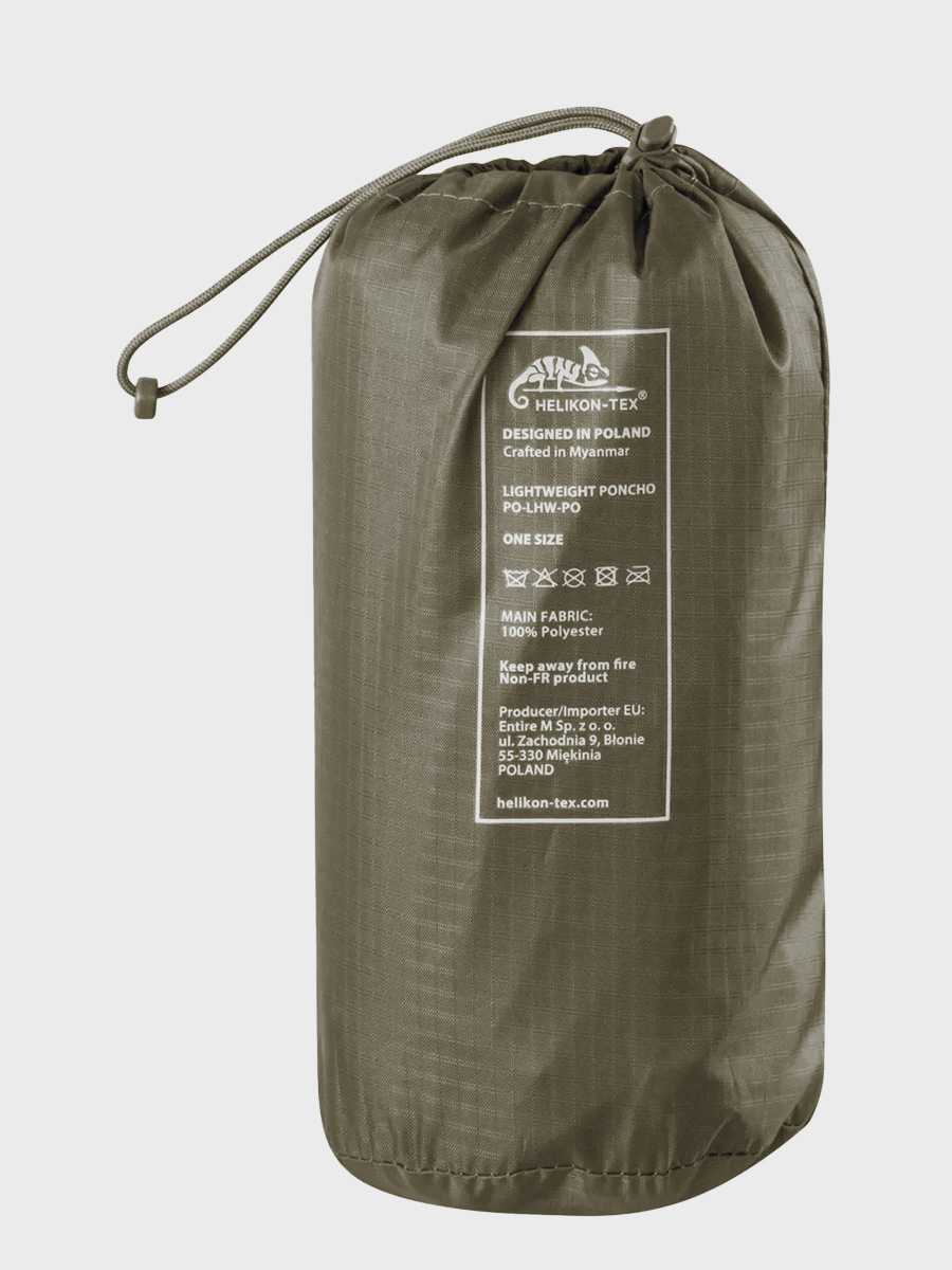 UWAGA! Przedmiotem oferty jest HELIKON Poncho Lightweight w kolorze Olive Green. Pozostałe elementy służą wizualizacji funkcjonalności.
