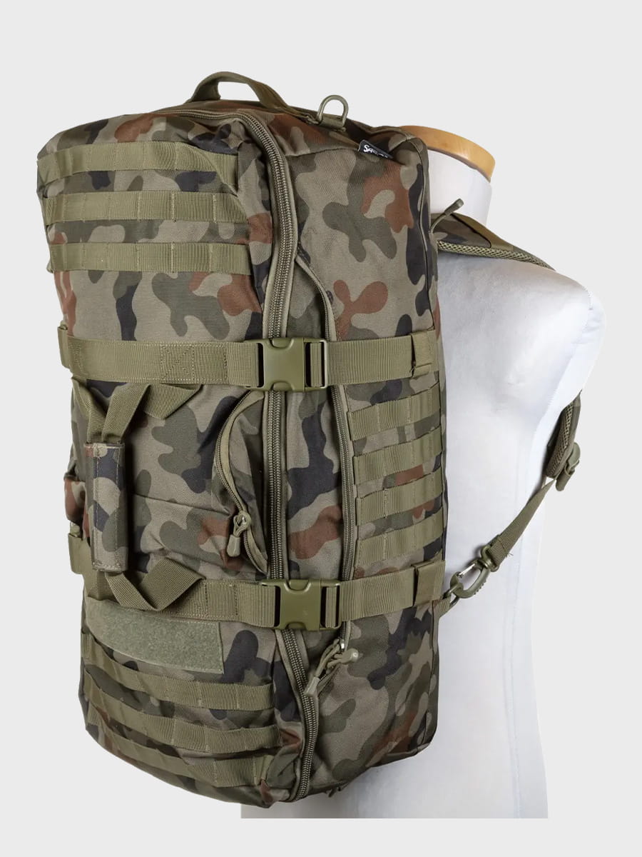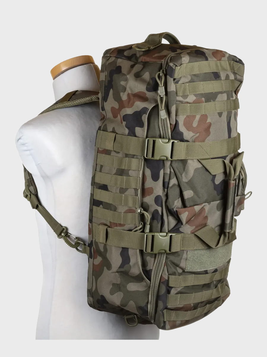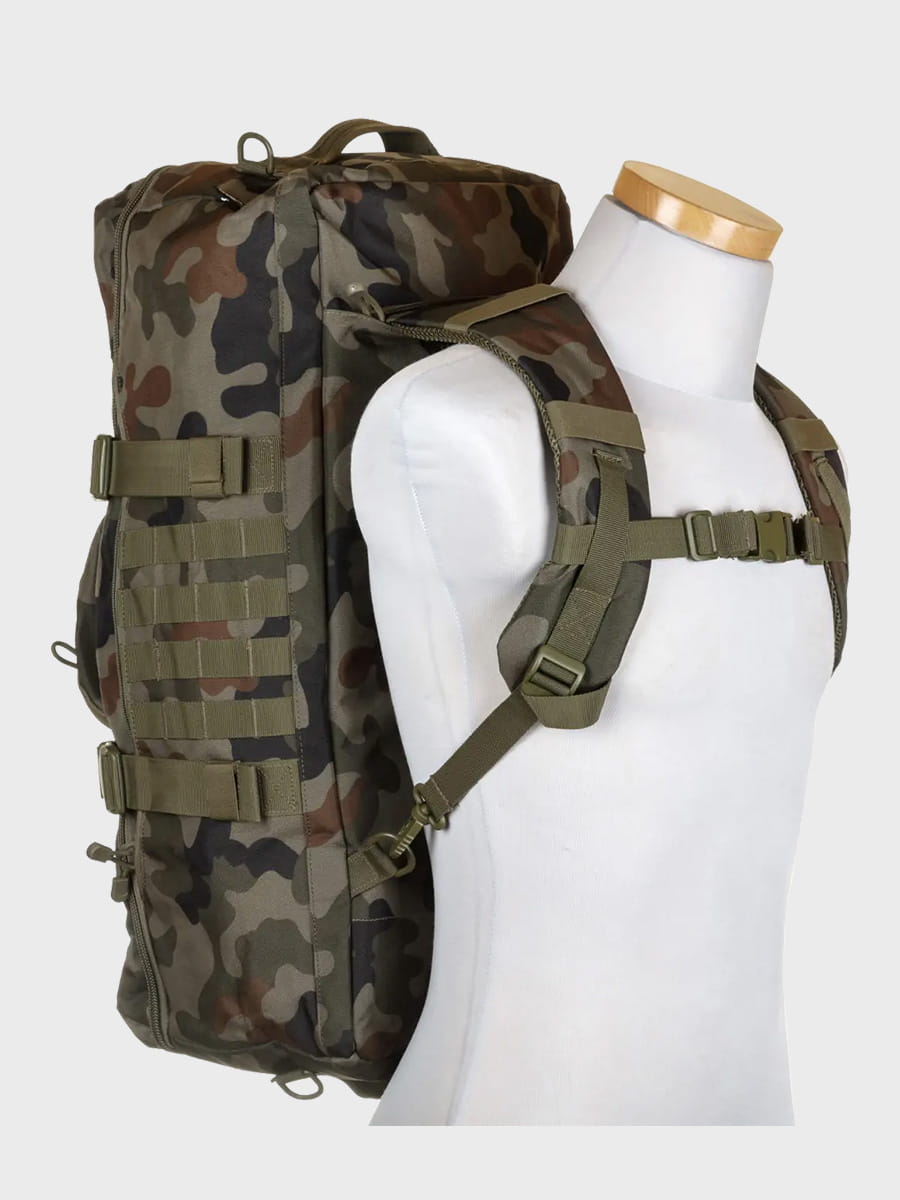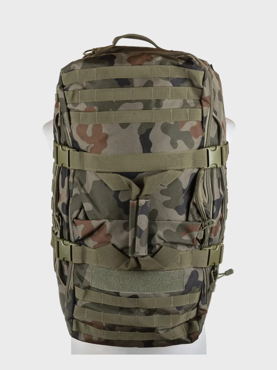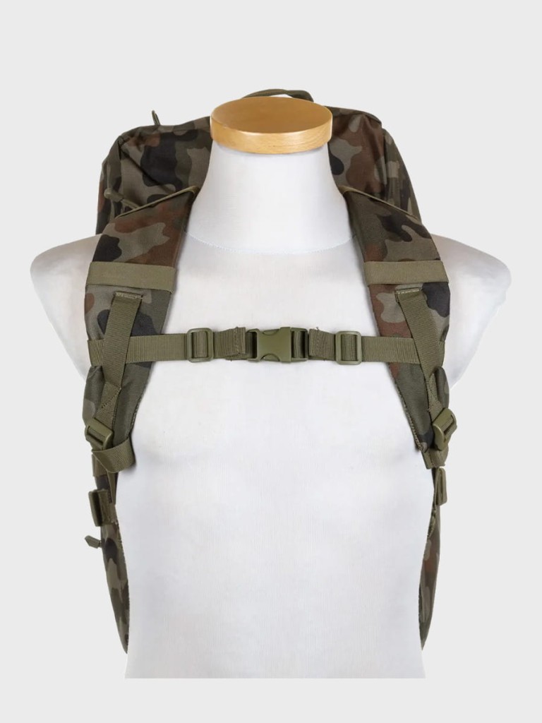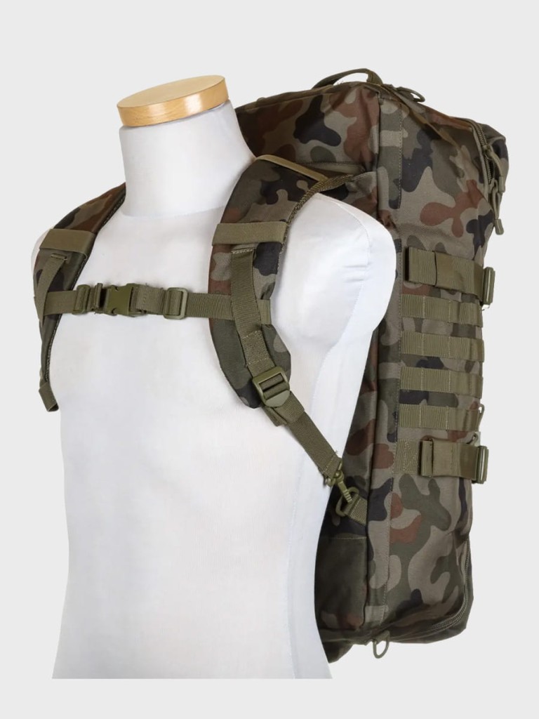 System MOLLE umożliwia mocowanie dodatkowego wyposażenia, co pozwala na łatwe dostosowanie plecaka do indywidualnych potrzeb.