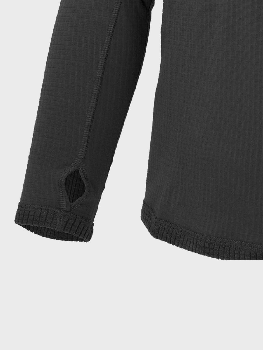 Koszulka posiada wyprofilowany dłuższy tył, otwory na kciuki w rękawach, które ułatwiają zakładanie wielu warstw odzieży oraz golf z zamkiem błyskawicznym dla lepszej osłony szyi i podbródka, pozwoli wygodnie regulować temperaturę podczas podejść.