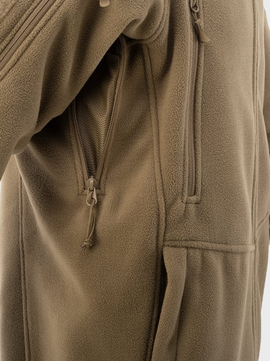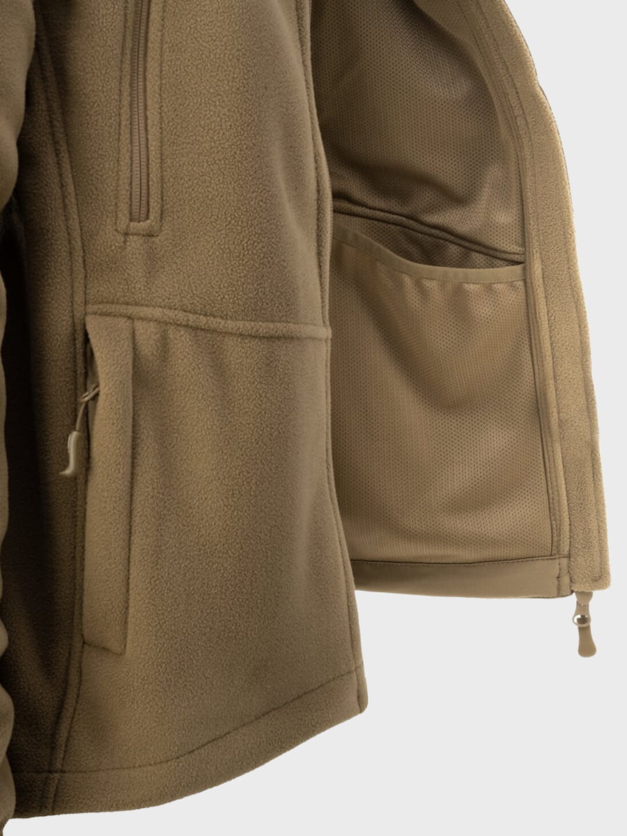 Wykonana z materiału Hybrid Fleece o gramaturze 340 g/m2. Składa się z dwóch warstw materiału o różnych właściwościach. Na zewnątrz przypomina klasyczny polar, za to wewnątrz jest to tzw. grid fleece. To materiał z charakterystyczną strukturą w drobną kratkę, który składa się z grubszych, wypukłych kwadratowych elementów z polaru i cieńszych przerw pomiędzy nimi. W ten sposób Patriot Mk2 jest lżejszy i ma lepszą oddychalność, a przy tym nadal jest ciepły.