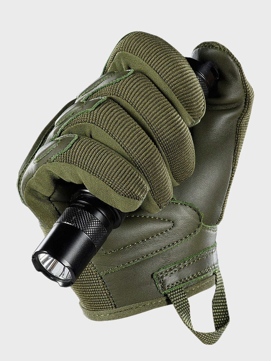 Wykonane ze skóry naturalnej. W dłoni znajduje się syntetyczna wkładka, która zapobiega przesuwaniu się broni w dłoni. Od zewnątrz na falangach palców, dłoni i kciuku znajdują się wkładki amortyzujące.