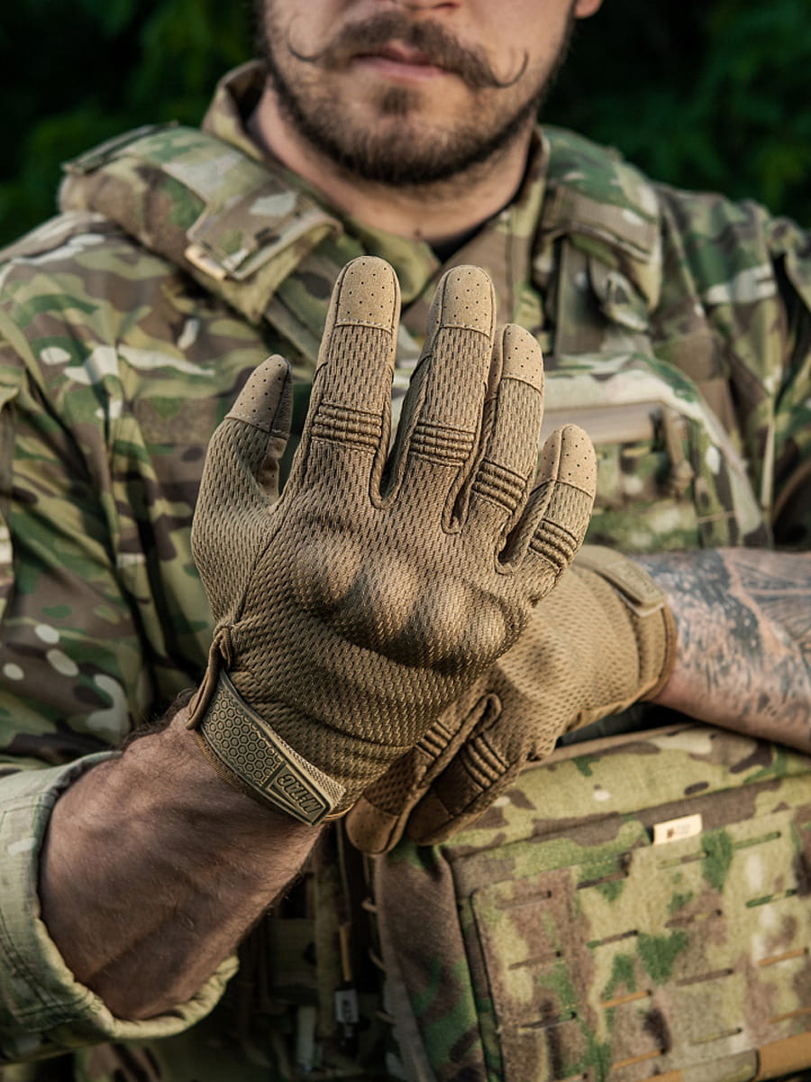 UWAGA! Przedmiotem oferty są M-Tac Rękawice A30 w kolorze Coyote. Pozostałe elementy służą przedstawieniu funkcjonalności.
