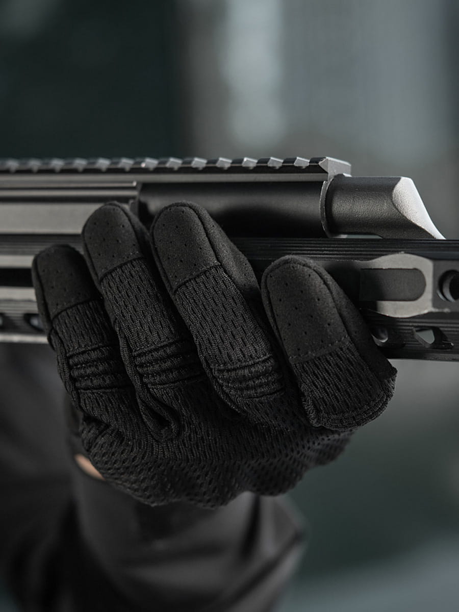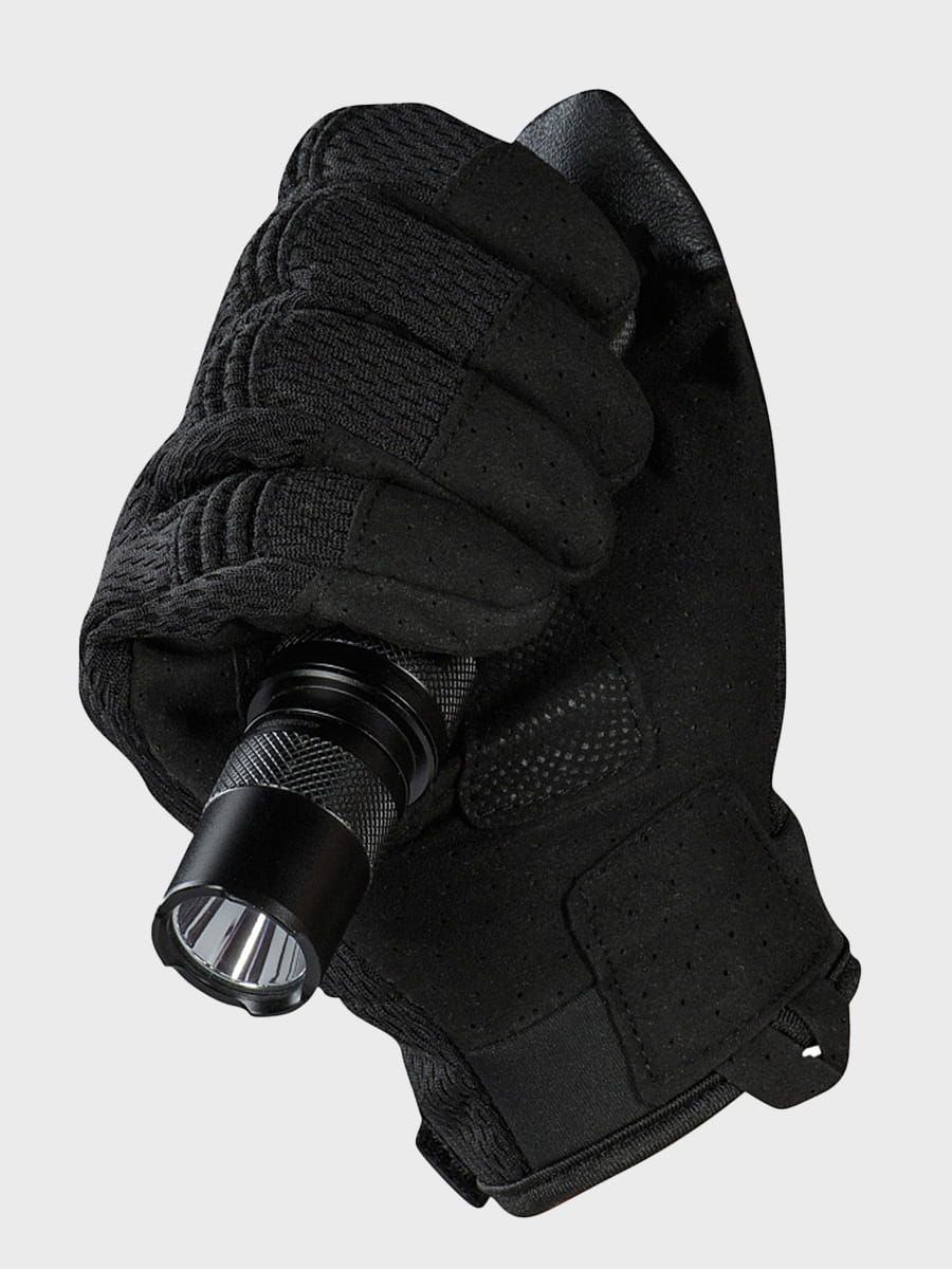 Zewnętrzna strona rękawic wykonana jest z oddychającej siatki, podczas gdy część chwytna zabezpieczona jest przed rozdarciami i uszkodzeniami dzięki wykorzystaniu odpornej na te czynniki mikrofibry.