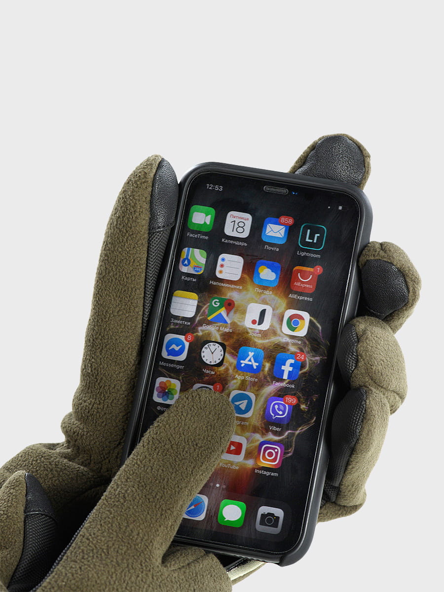 UWAGA! Przedmiotem oferty są Rękawice Fleece Thinsulate w kolorze Olive. Pozostałe elementy służą wizualizacji funkcjonalności.