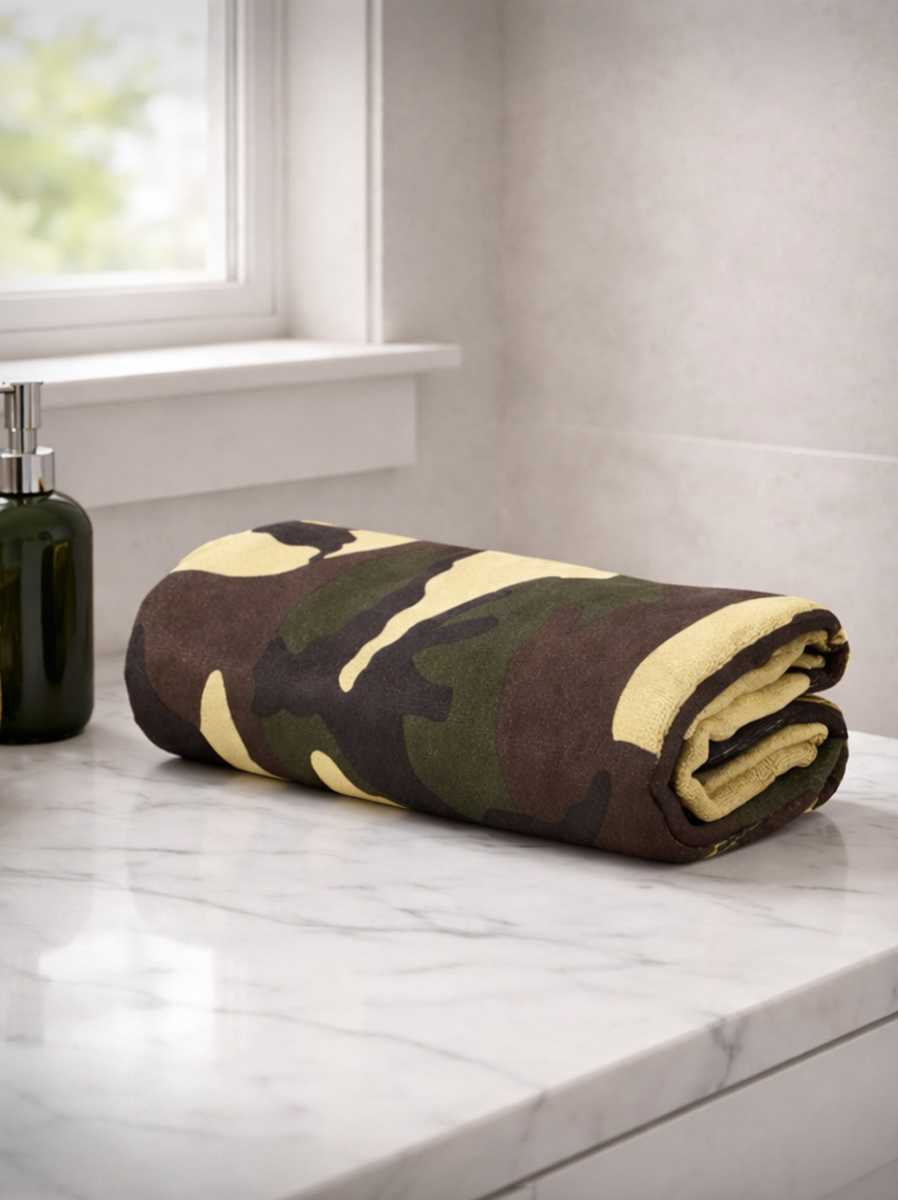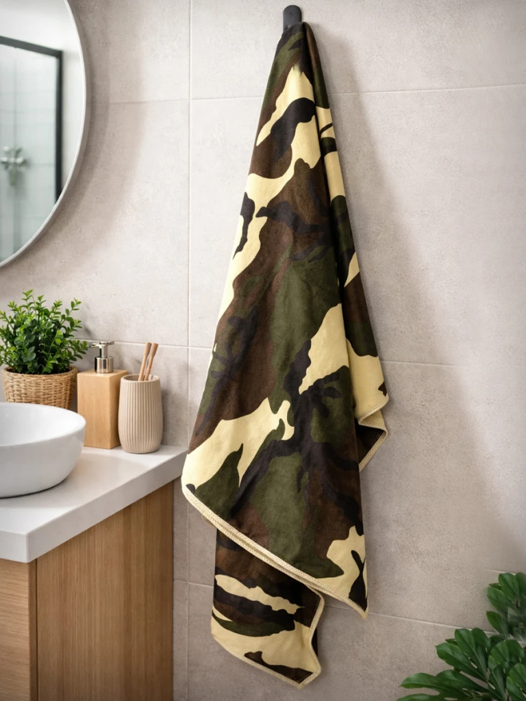 UWAGA! Przedmiotem oferty jest Fosco Ręcznik z mikrofibry w kamuflażu 100 X 50 cm. Pozostałe elementy służą przedstawieniu funkcjonalności.
