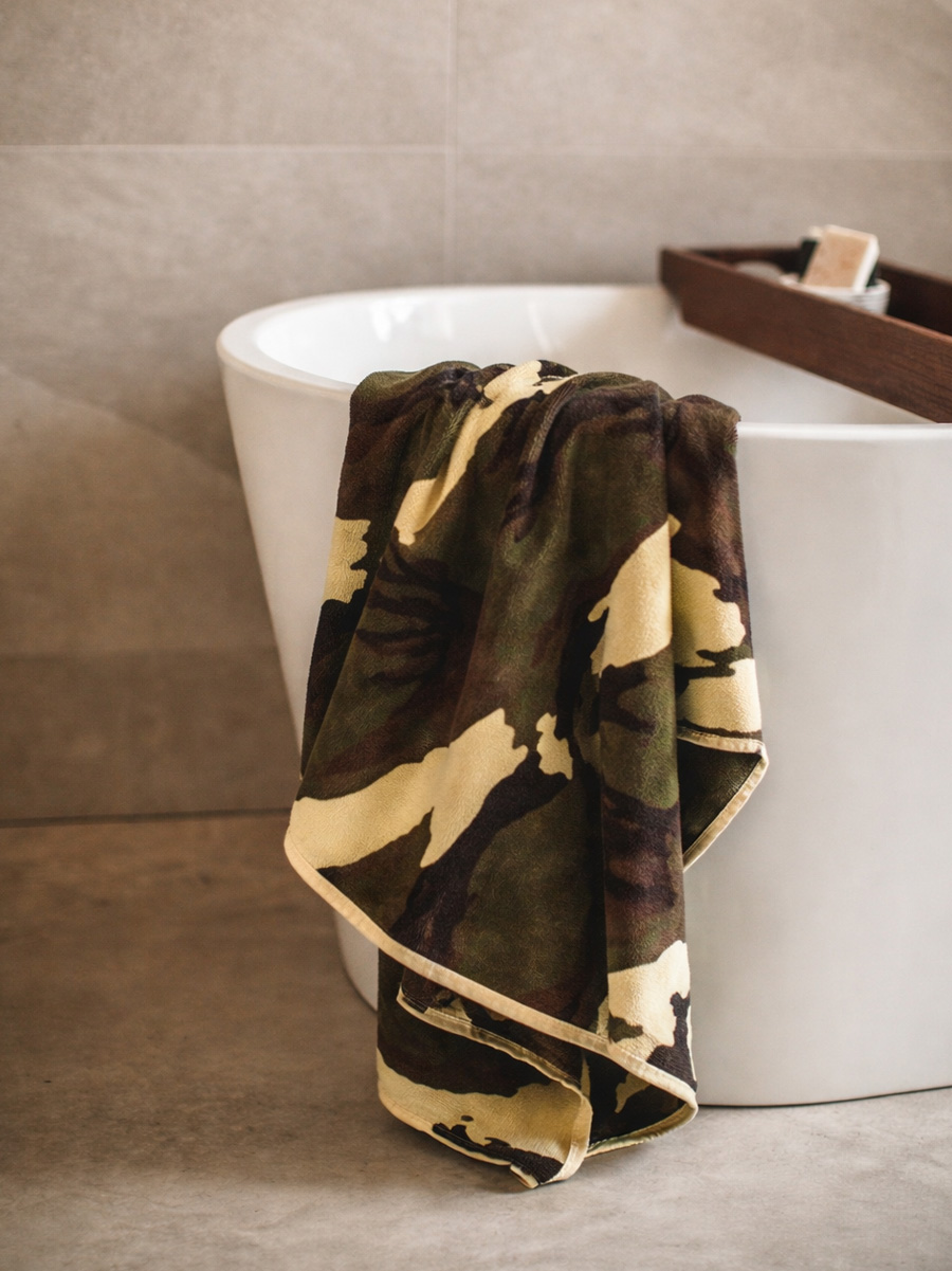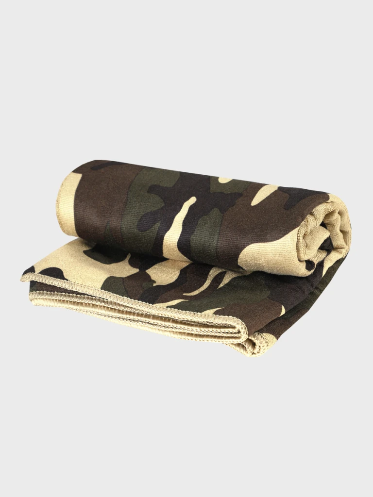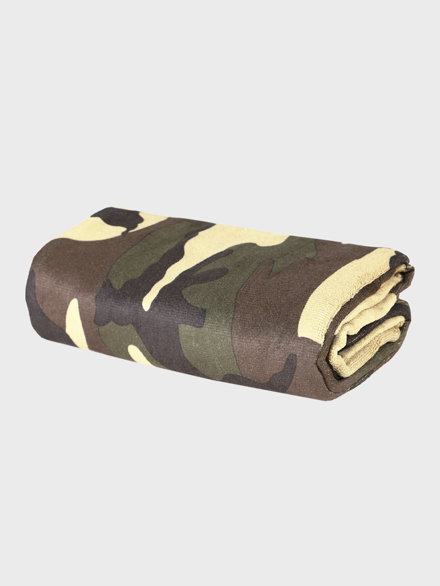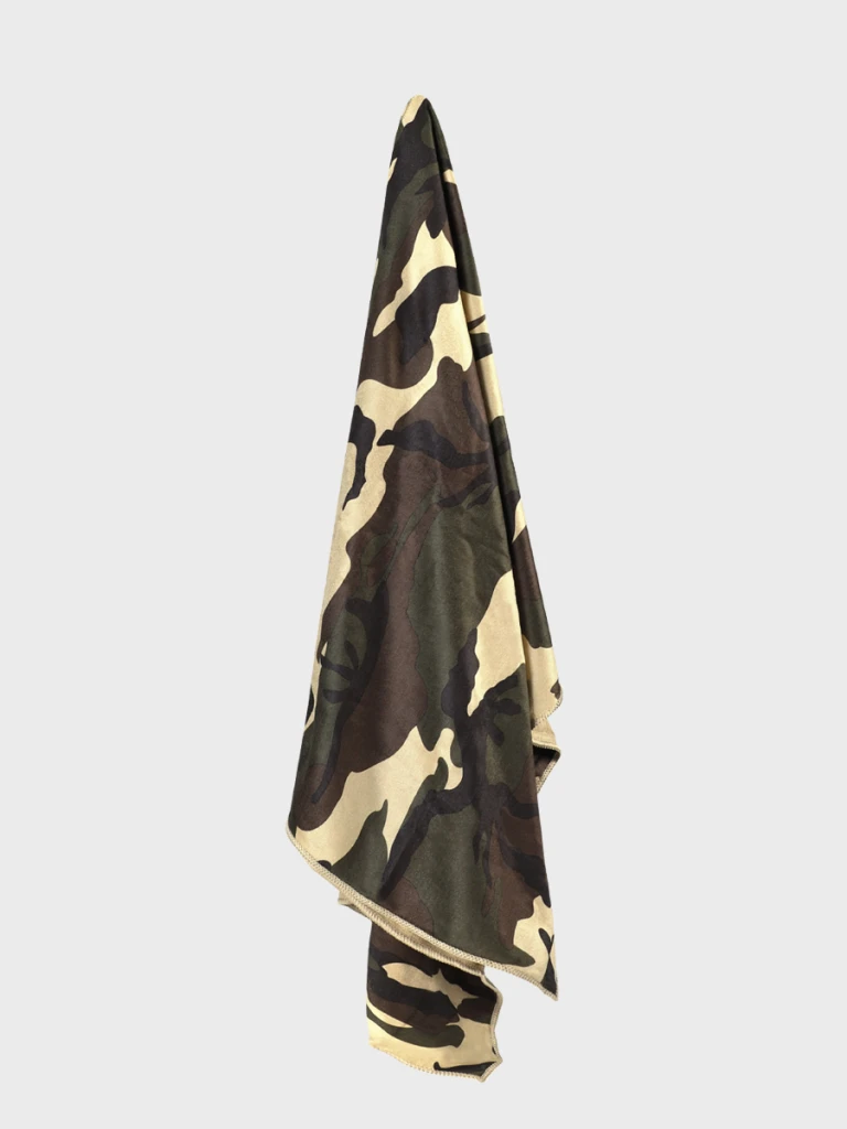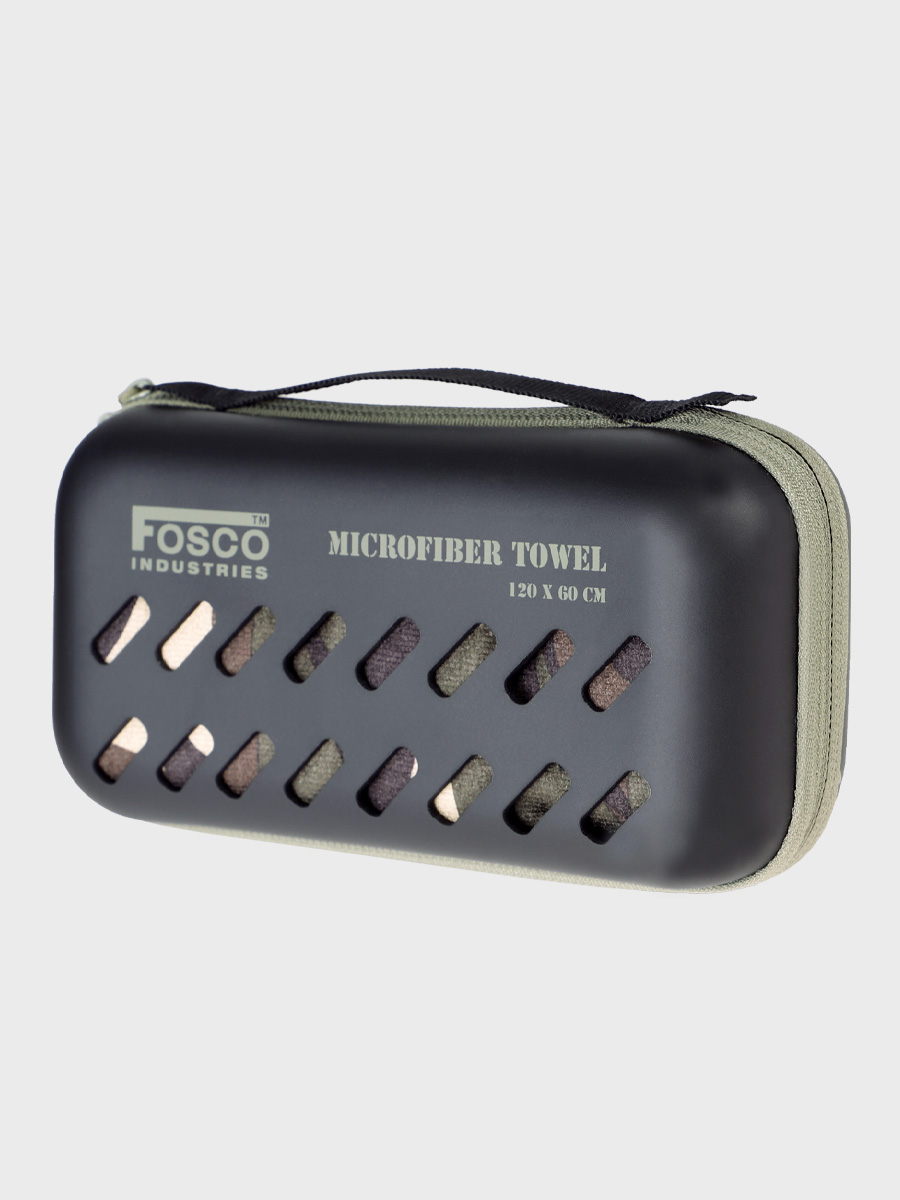 UWAGA! Przedmiotem oferty jest Fosco Ręcznik z mikrofibry w kamuflażu 120 x 60 cm. Pozostałe elementy służą przedstawieniu funkcjonalności.