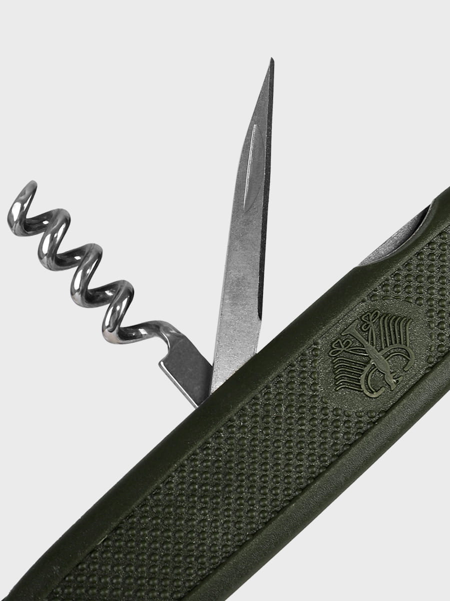 Klasyczne długie ostrze, korkociąg oraz pilnik do paznokci przydadzą się podczas codziennego użytkowania w domu.