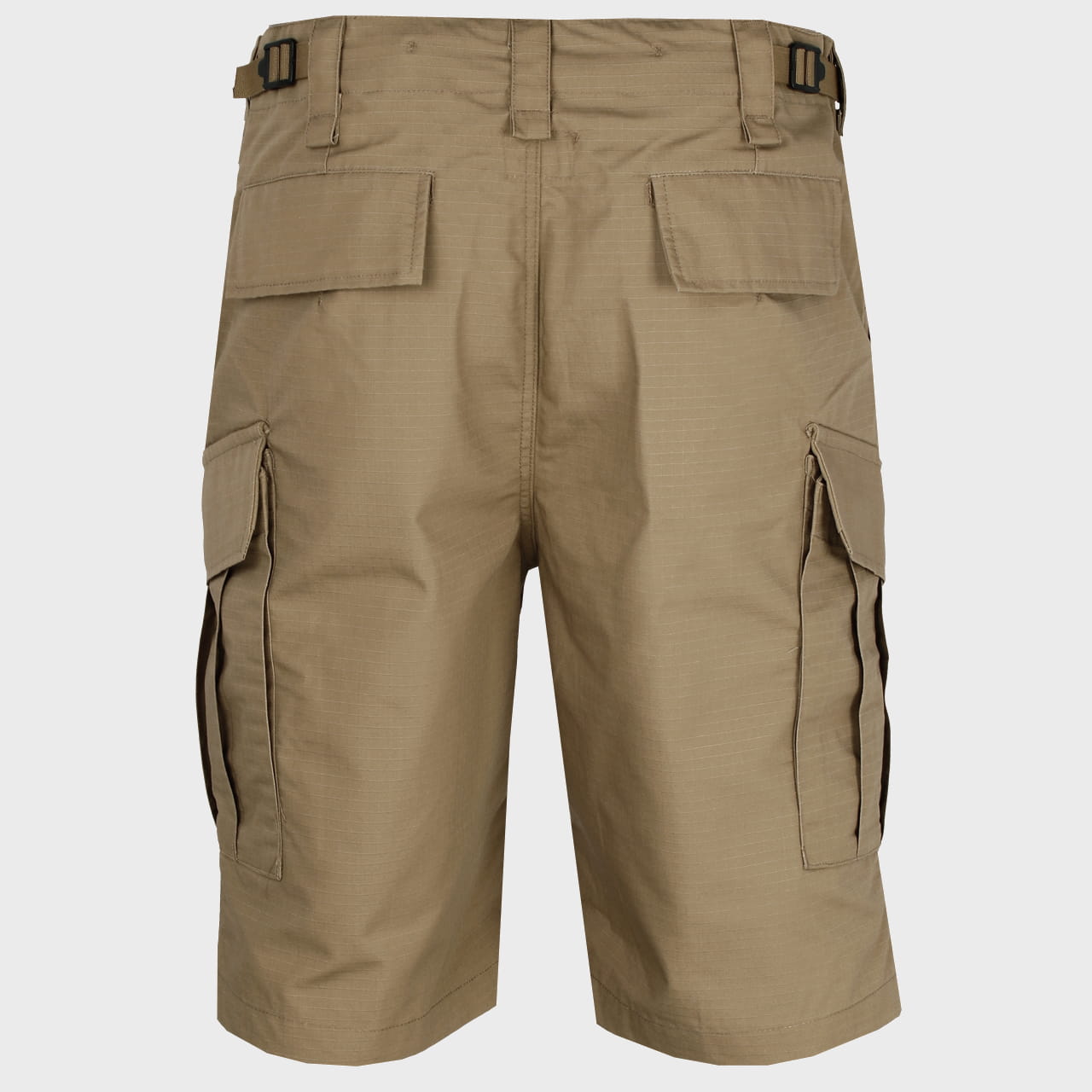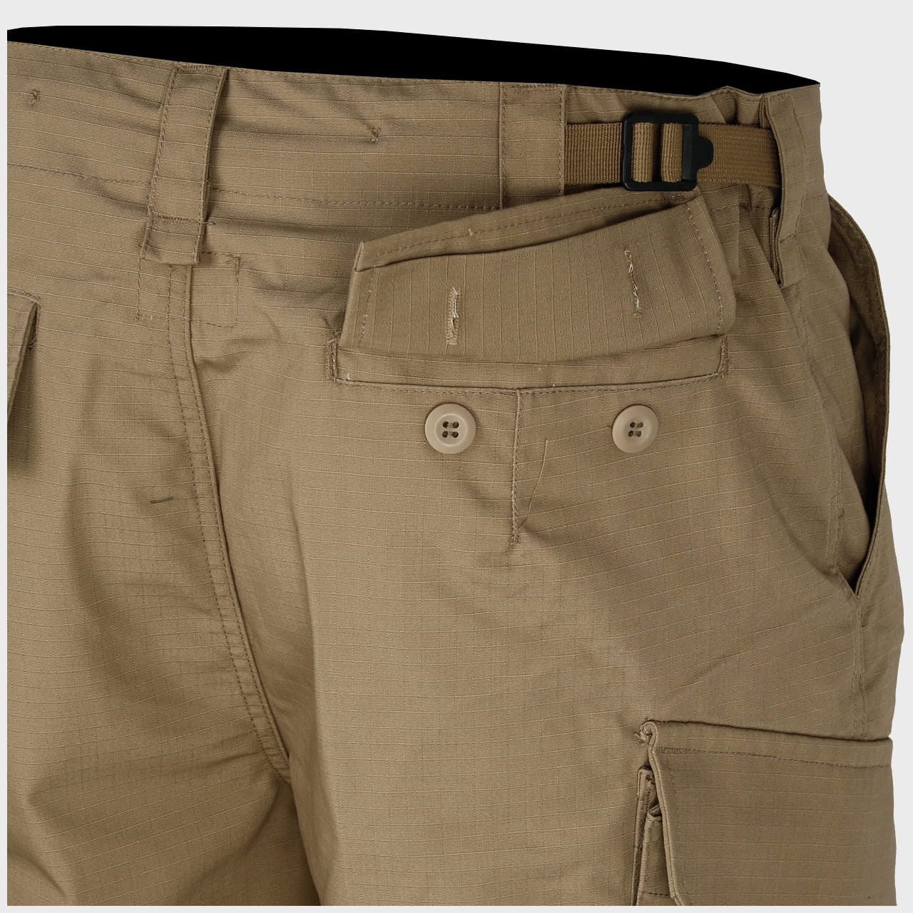 Spodenki są pakowne – posiadają 6 praktycznych kieszeni: 2 klasyczne na biodrach, 2 tylne oraz 2 udowe typu cargo, o zwiększonej pojemności i ukośnym, wygodnym dostępie. Kieszenie tylne, jak i udowe zamykane są patkami na guziki.