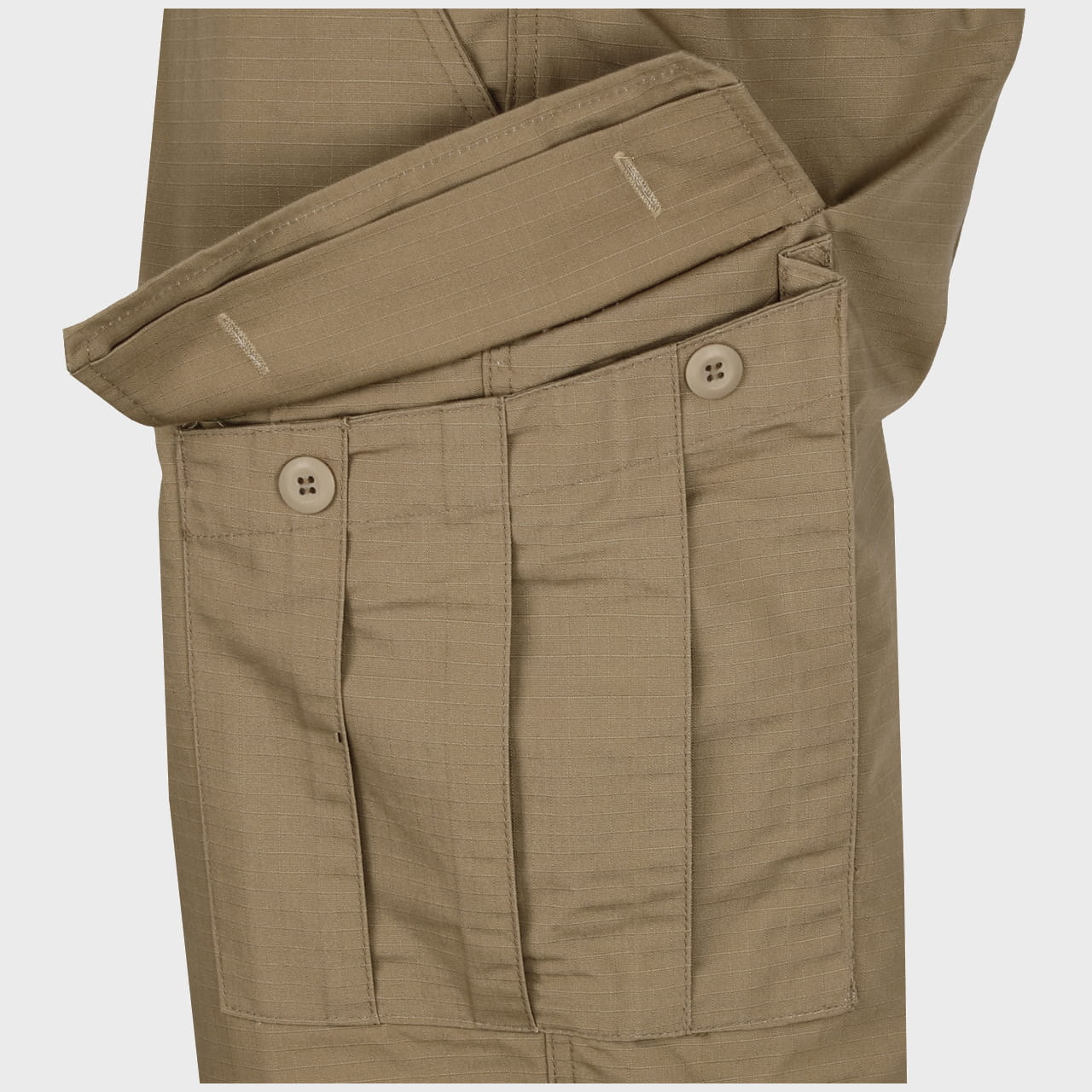 Wykonane są z mieszanki bawełny (45%) oraz poliestru (55%) – materiał jest wytrzymały, przepuszcza powietrze i szybko schnie, dzięki czemu spodnie idealnie sprawdzą się w wysokich letnich temperaturach. Zastosowany splot Rip-Stop dodatkowo wzmacnia materiał, czyniąc go wysoce odpornym na rozdarcia i przetarcia.