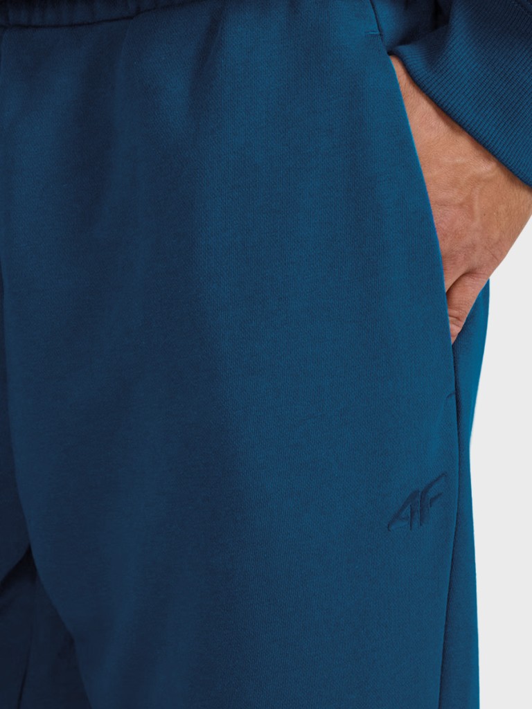 Spodnie dresowe marki 4F to połączenie wygody i stylu, które sprawdzi się w każdej codziennej sytuacji. Miękka dzianina french terry zapewnia komfort, a zwężane nogawki z elastyczną gumką gwarantują nowoczesny wygląd. Bawełniany materiał z domieszką poliestru utrzymuje kształt i wytrzymuje długotrwałe użytkowanie. Brak podszycia czyni je lekkimi, dzięki czemu są idealne na cieplejsze dni. To praktyczny wybór dla mężczyzn ceniących swobodę ruchu i casualowy charakter.