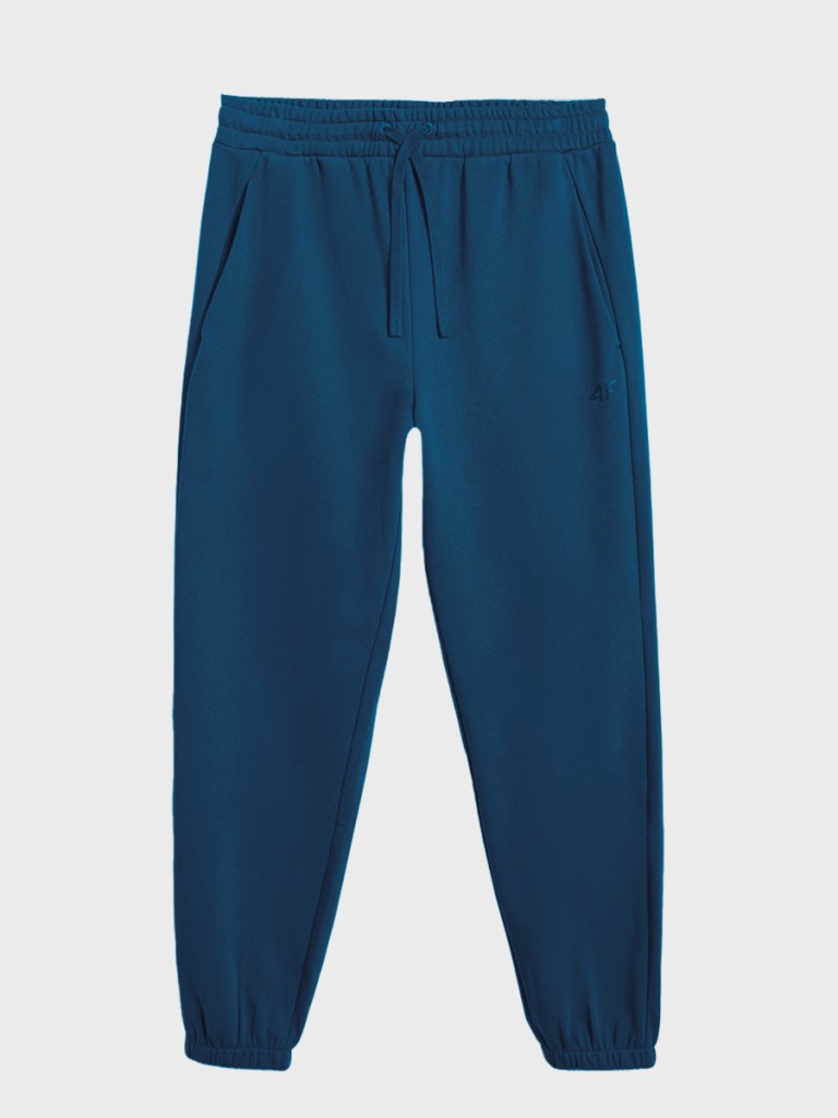 Zwężane nogawki i elastyczny pas nadają spodniom modny, sportowy charakter.