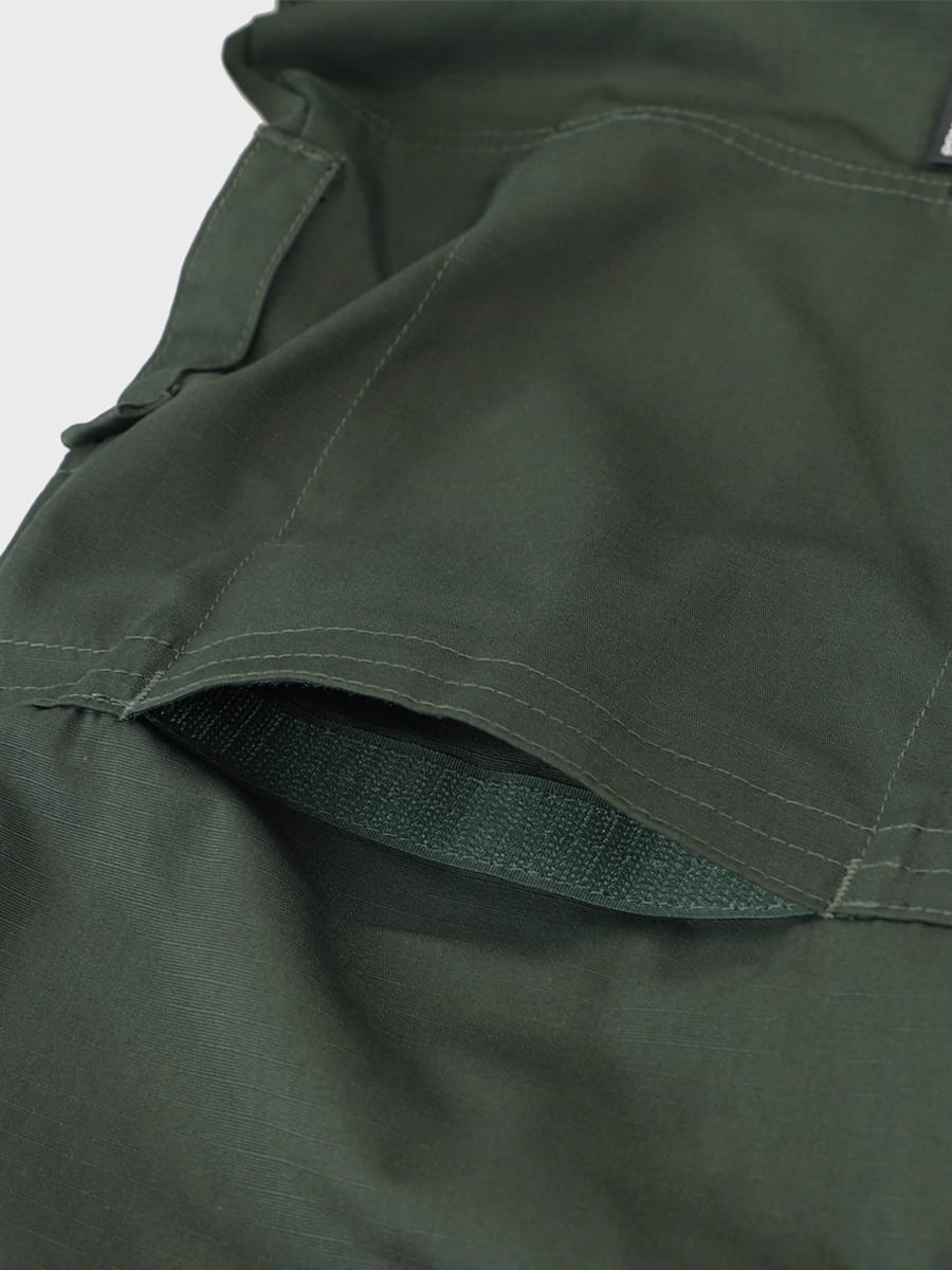 Duża liczba kieszeni (łącznie 8, w tym cargo, biodrowe i tylne) pozwala na wygodne przechowywanie niezbędnych przedmiotów.